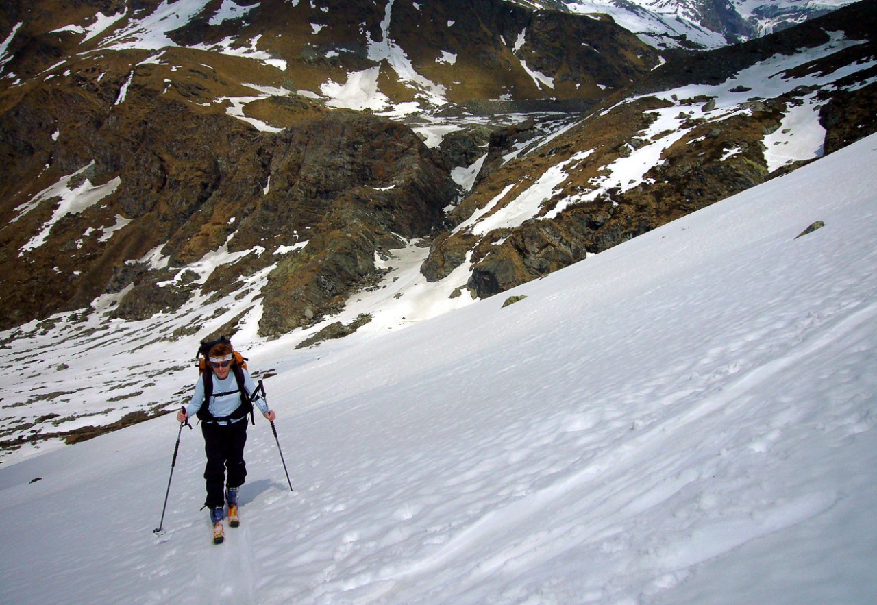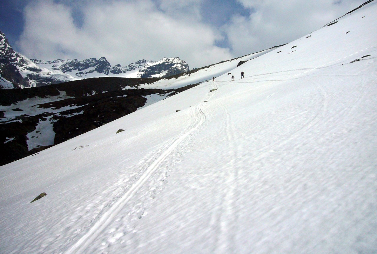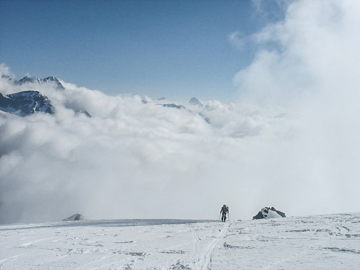 Le Mont Velan est un autre grand sommet du Valais dont l’ascension par la voie normale, la visite de son refuge unique et d’architecture contemporaine, le passage du col de la Gouille, la descente directe par le glacier de Valsorey pour retrouver le chemin de Bourg St-Pierre, vous laisseront un sentiment du travail bien fait. En effet, le parcours offre tout ce qu’on peut attendre pour ne pas s’ennuyer : cramponnage, pentes fortes, itinéraire incertain par mauvais temps et brouillard comme ce fut le cas ce jour là à la descente. Encore merci Mr GPS.