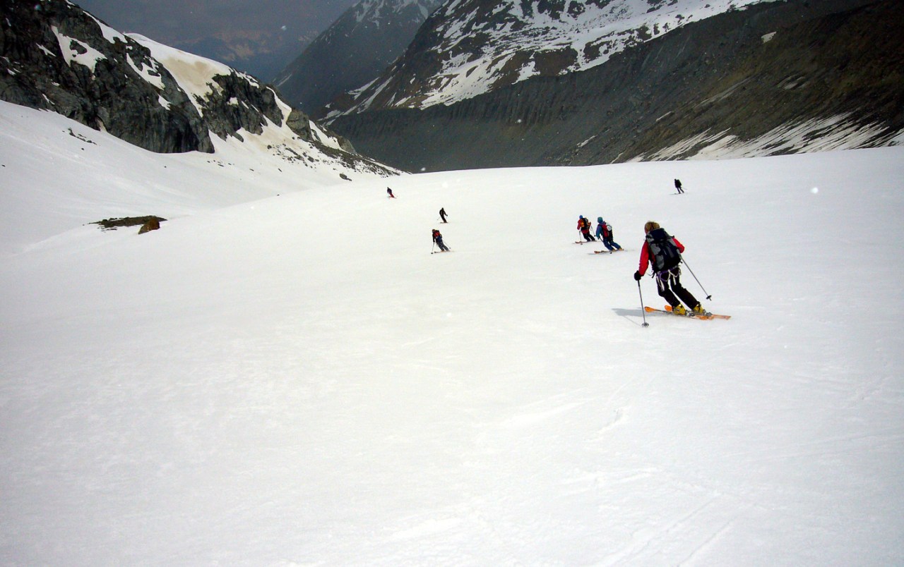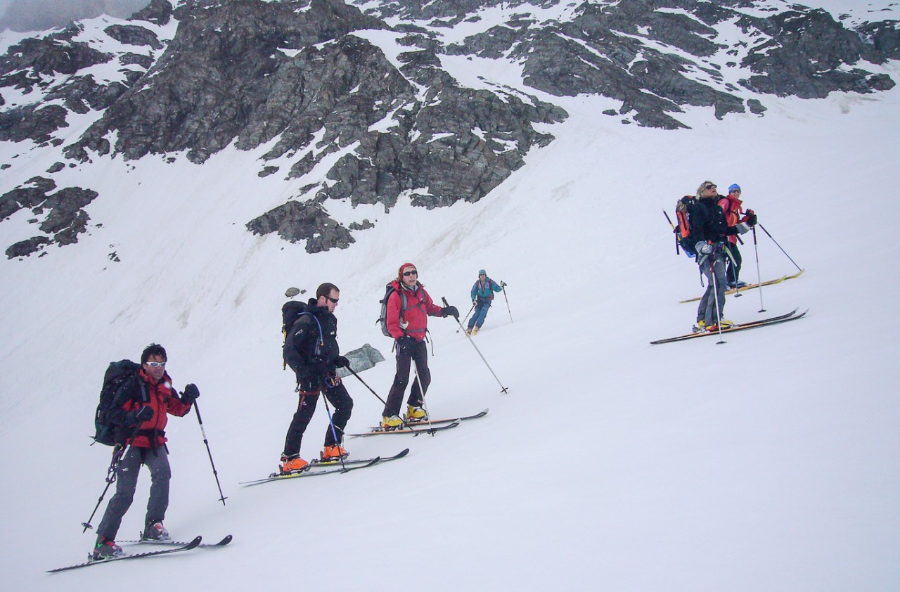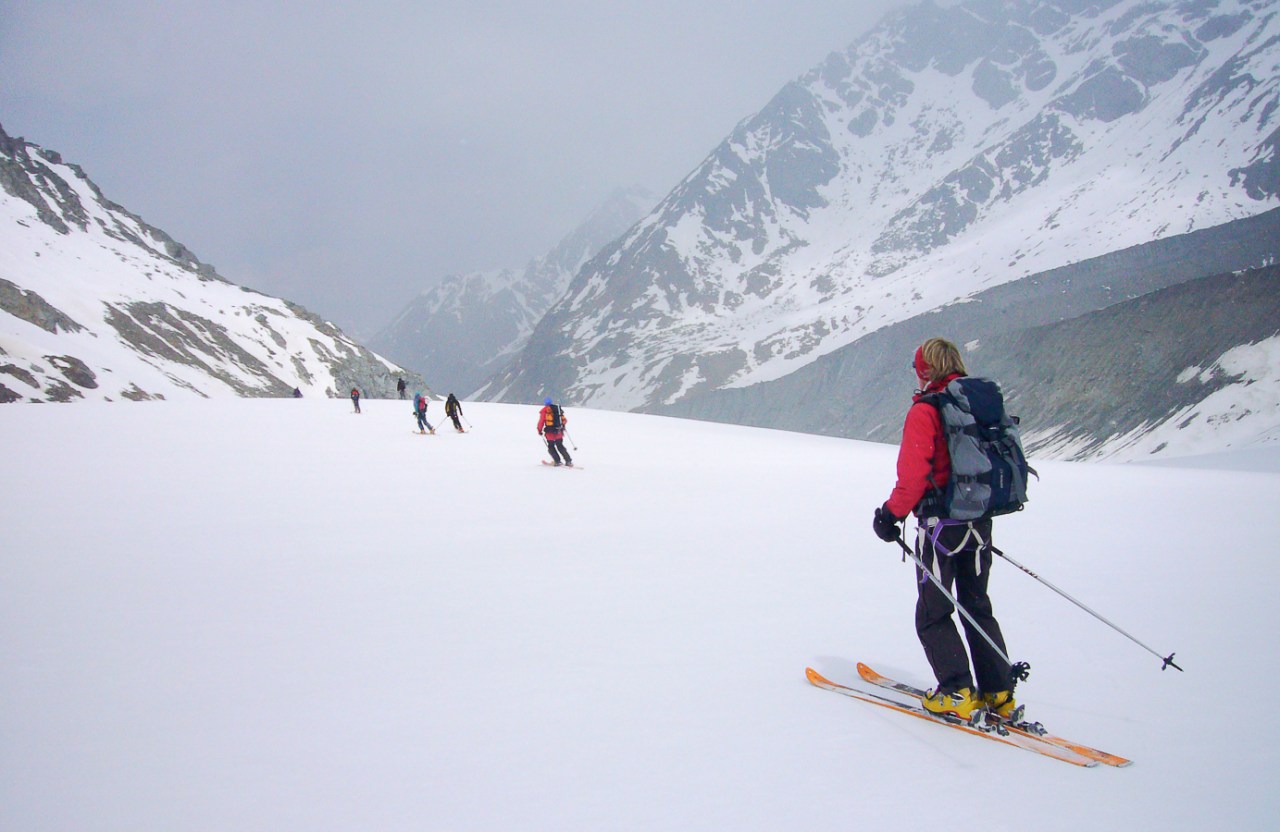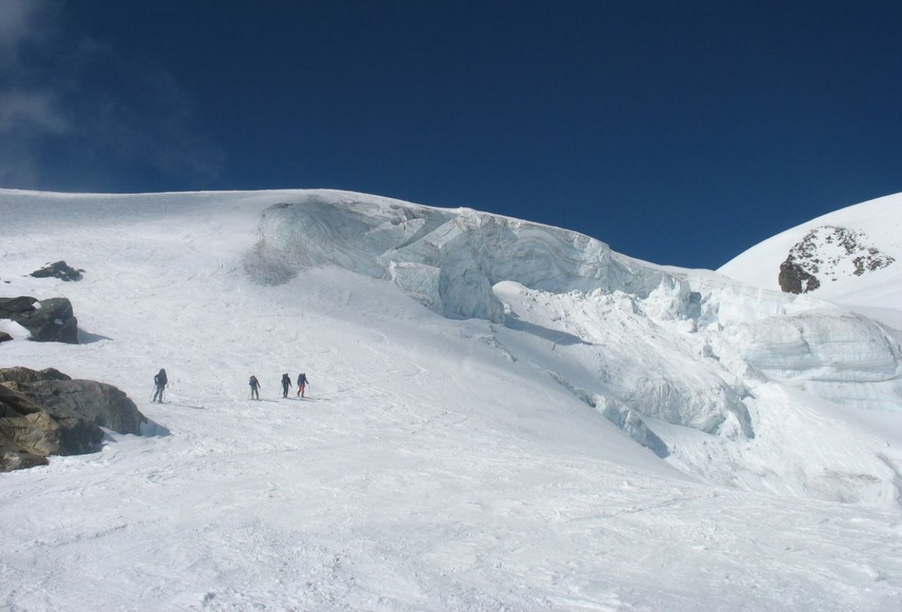 Le Mont Velan est un autre grand sommet du Valais dont l’ascension par la voie normale, la visite de son refuge unique et d’architecture contemporaine, le passage du col de la Gouille, la descente directe par le glacier de Valsorey pour retrouver le chemin de Bourg St-Pierre, vous laisseront un sentiment du travail bien fait. En effet, le parcours offre tout ce qu’on peut attendre pour ne pas s’ennuyer : cramponnage, pentes fortes, itinéraire incertain par mauvais temps et brouillard comme ce fut le cas ce jour là à la descente. Encore merci Mr GPS.