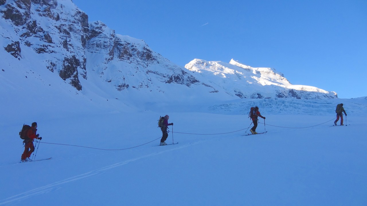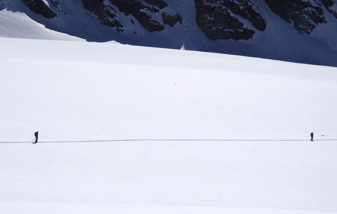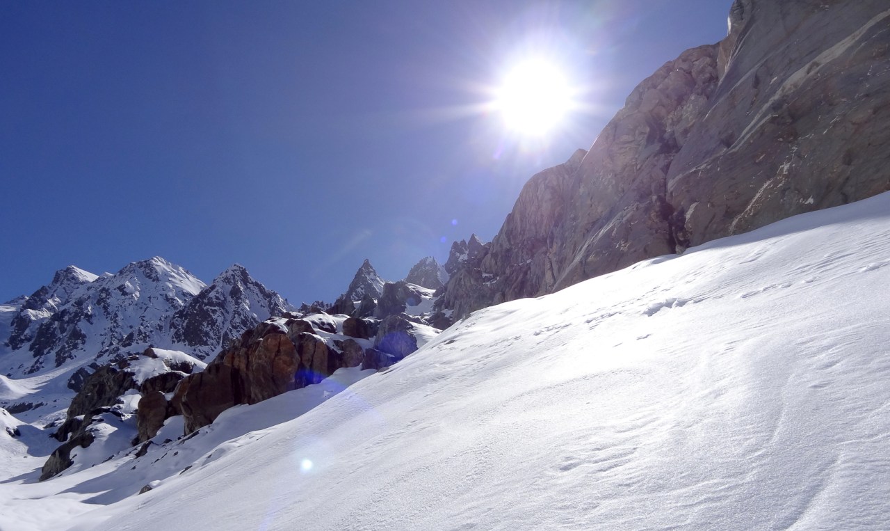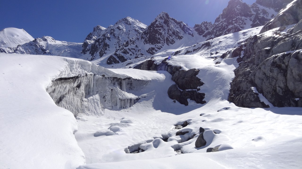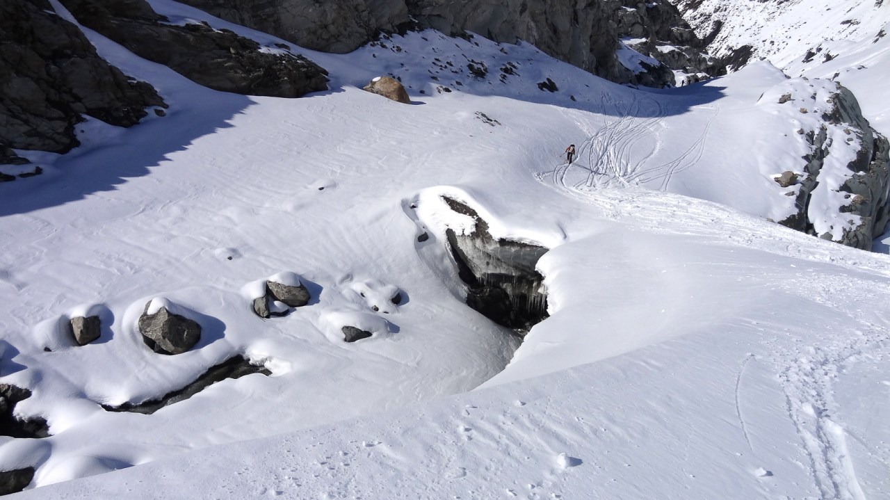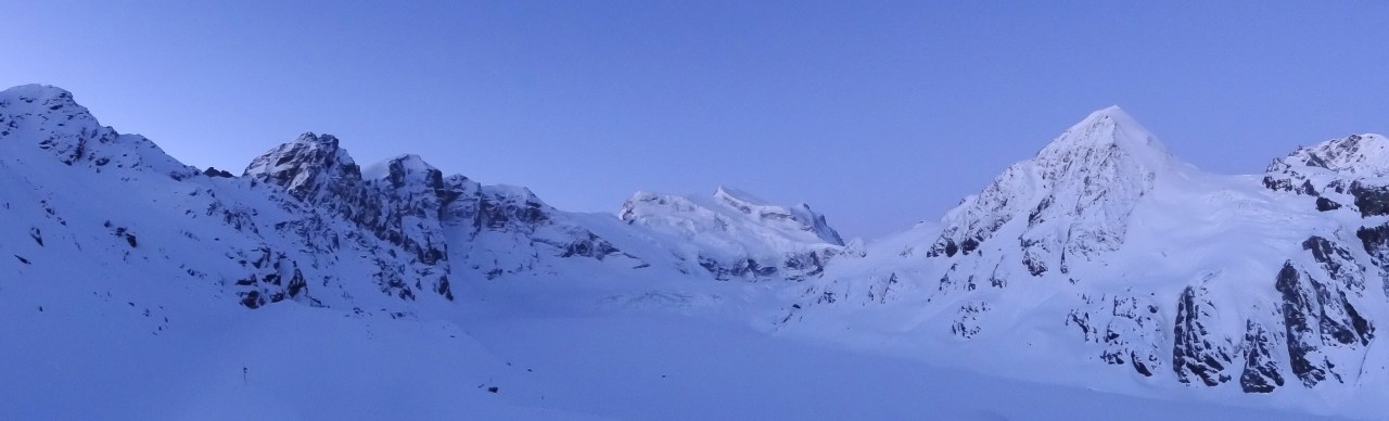 Avant de s’attaquer au Grand, il est bon de grimper au sommet du Petit, dans le but de bien observer le mastodonte, objet de vos désirs, de bien repérer le couloir du Gardien et la sortie sur le haut à droite, et la descente du Corridor, longue écharpe en diagonale de gauche à droite sous les barres de séracs. La montée au refuge de Pannossière est toujours une belle bambée mais on est bien récompensé par l’accueil d’Henri. Et surtout cette vue toujours extraordinaire sur le seigneur des lieux. Bien que peu engagée, cette course demande tout de même de savoir lire une carte et une boussole. On ne sait jamais…Ia descente sur le glacier des Folâts est un plus. La descente sur la vallée et Fionnay peut aussi se transformer en piste à sangliers quand tout est raviné et gelé.
