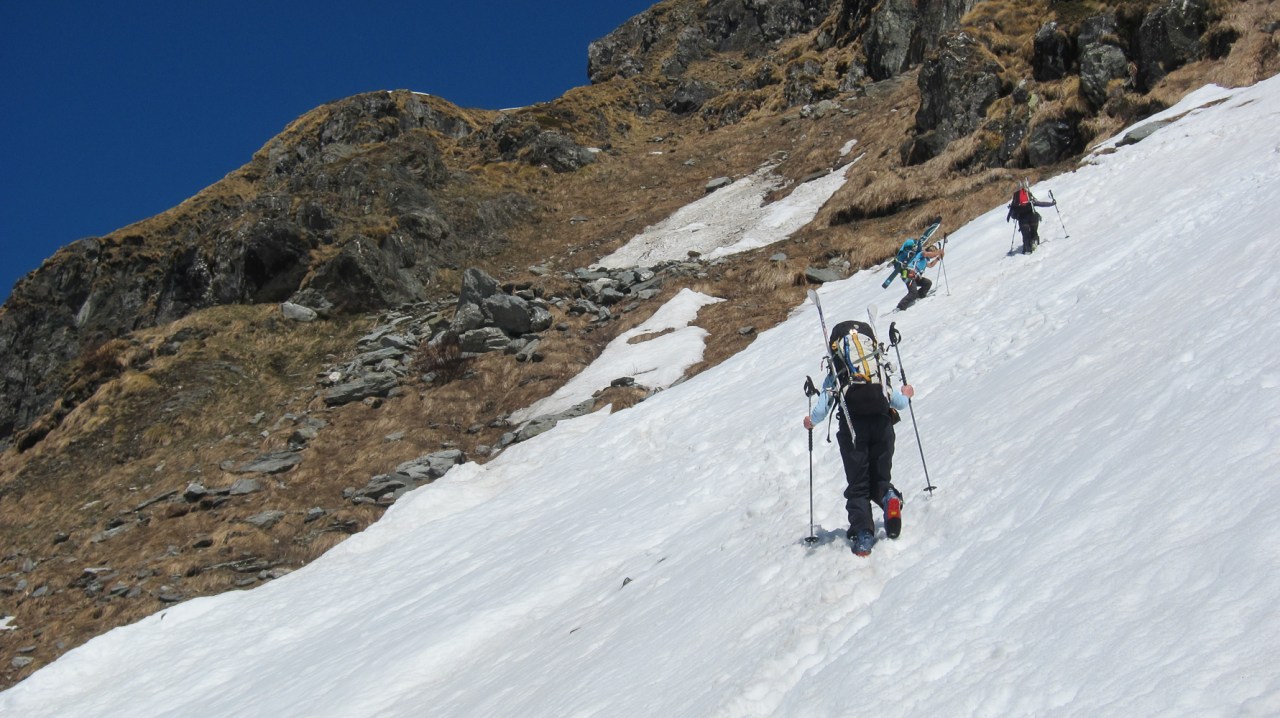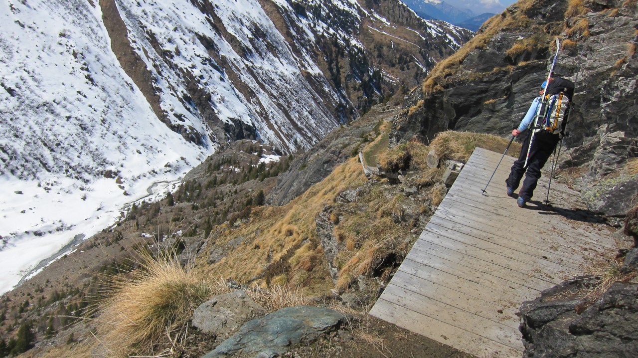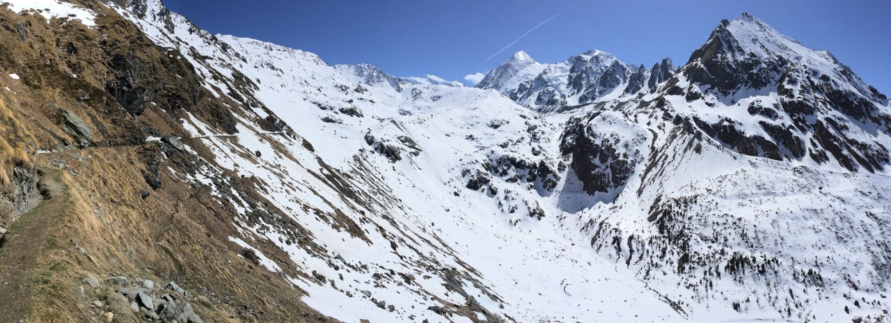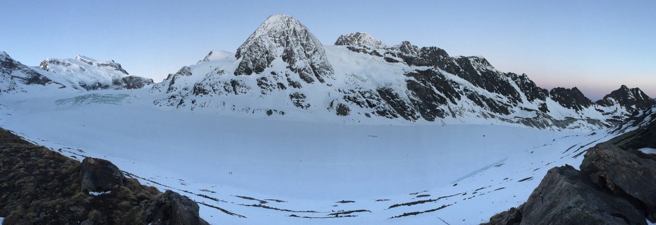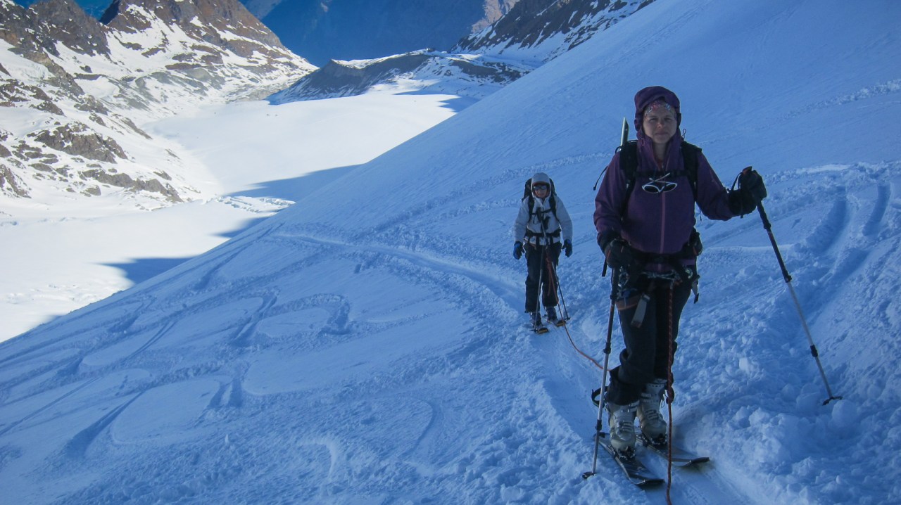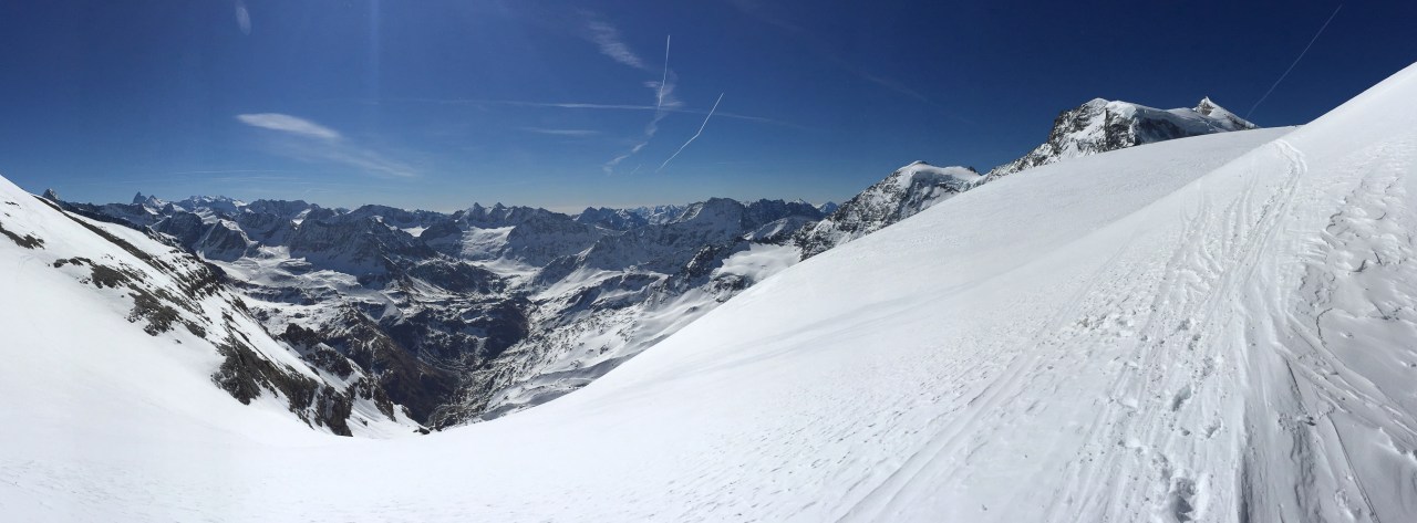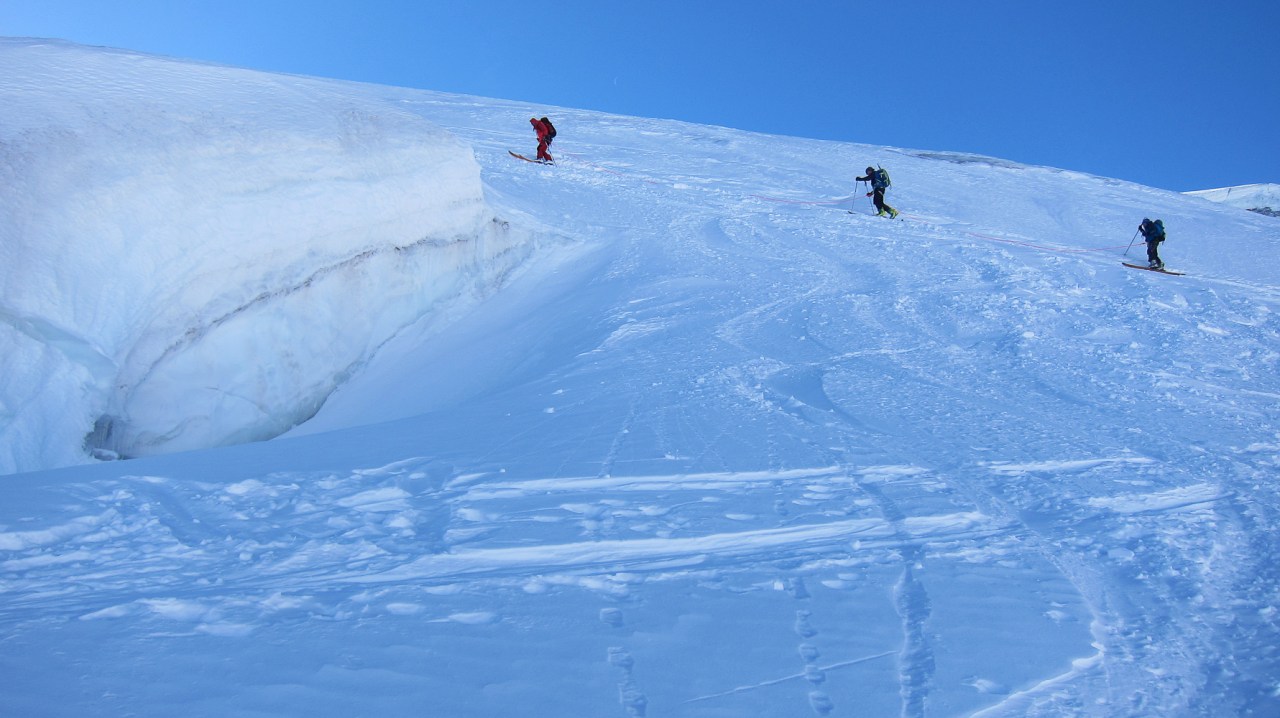 C’est encore avec plaisir qu’on remontera à la cabane de Pannossière pour aller visiter ce vaste secteur. On remontera alors les grandes pentes du Tournelon Blanc, à main gauche du Grand Combin. La pente forte qui mène au col du même nom promet une belle descente soutenue à condition qu’elle ne soit pas trop chargée.