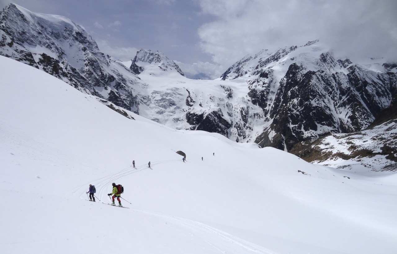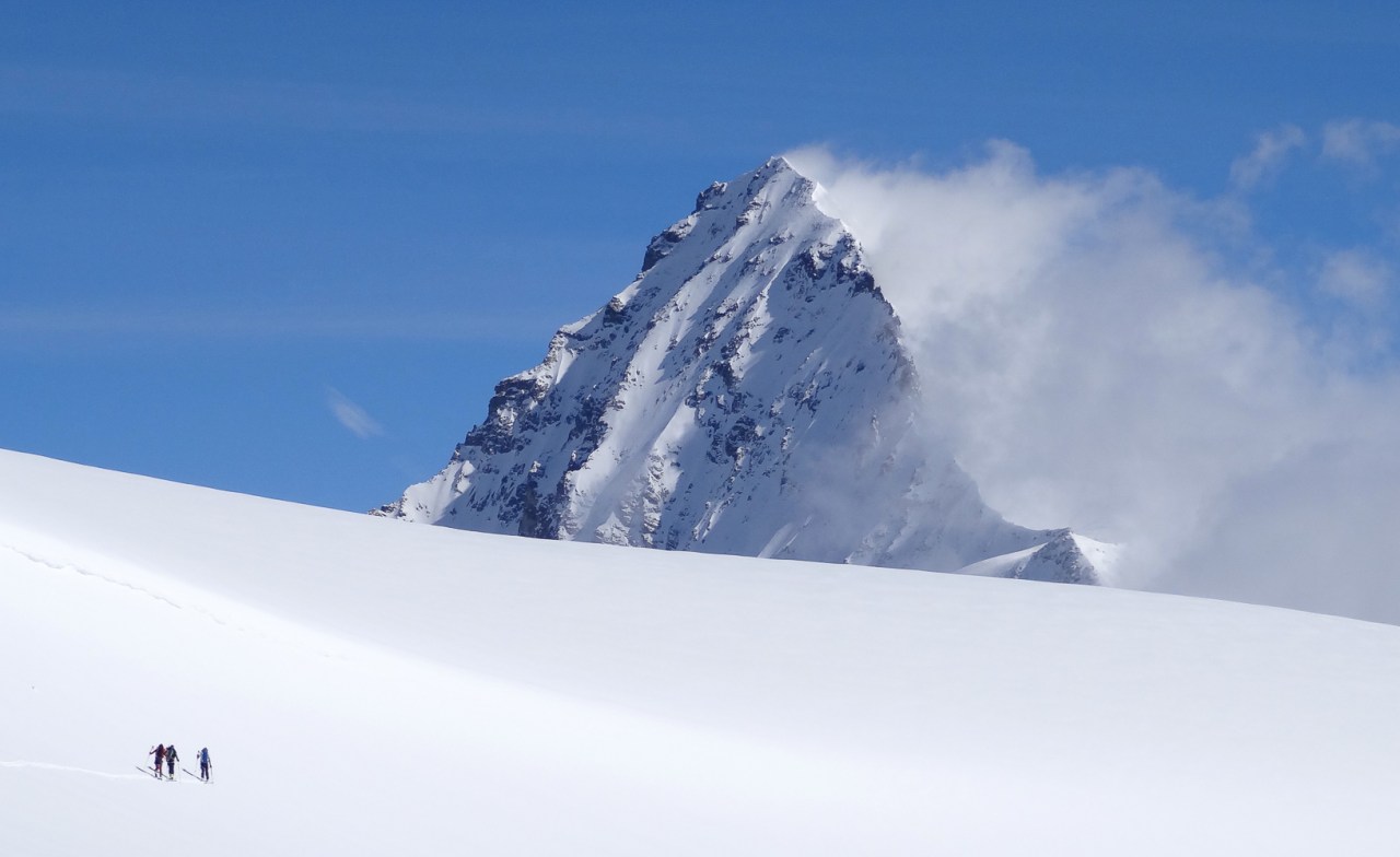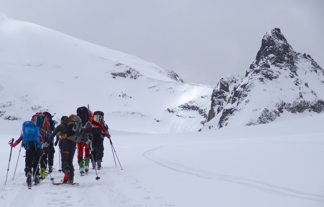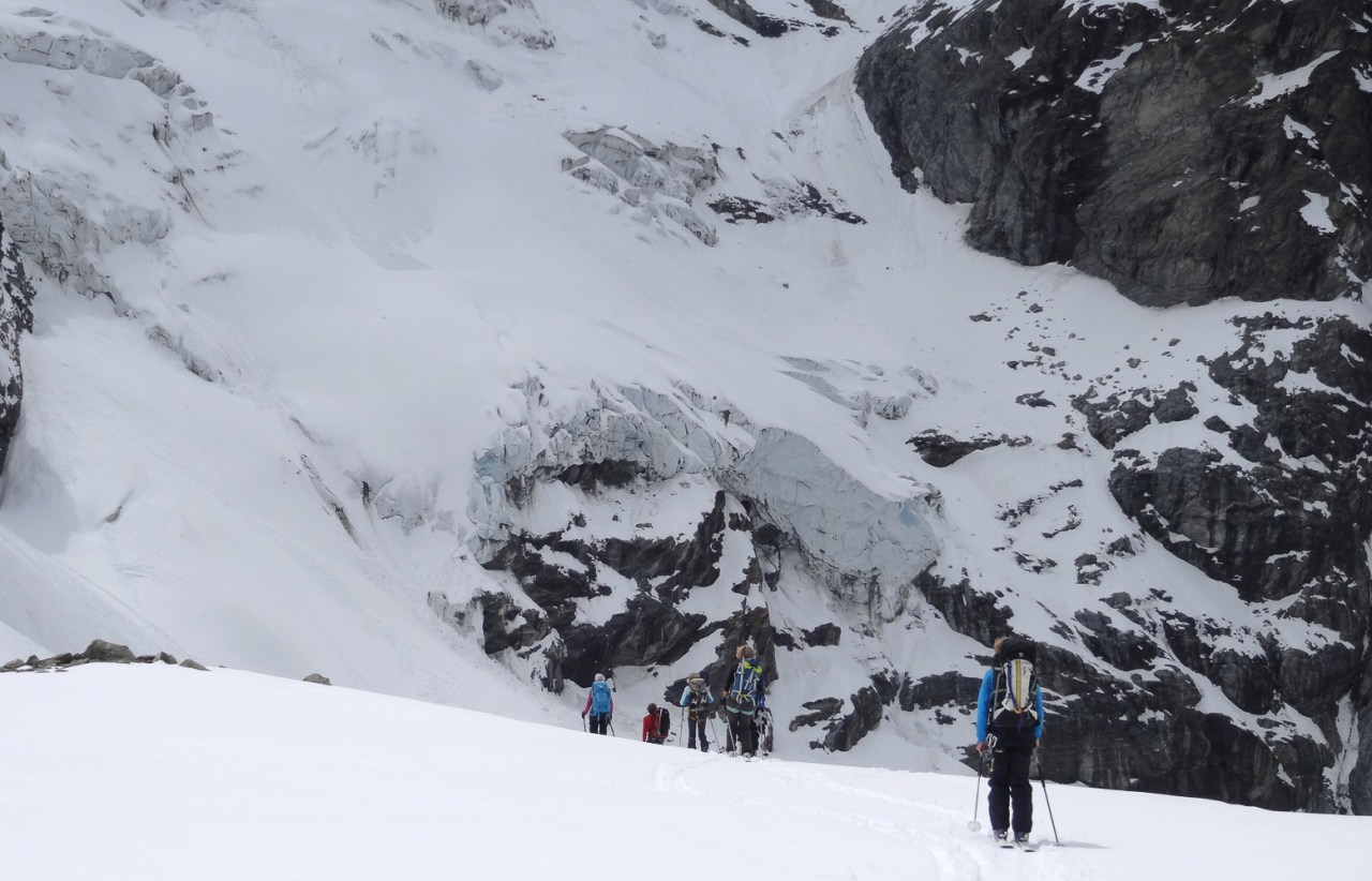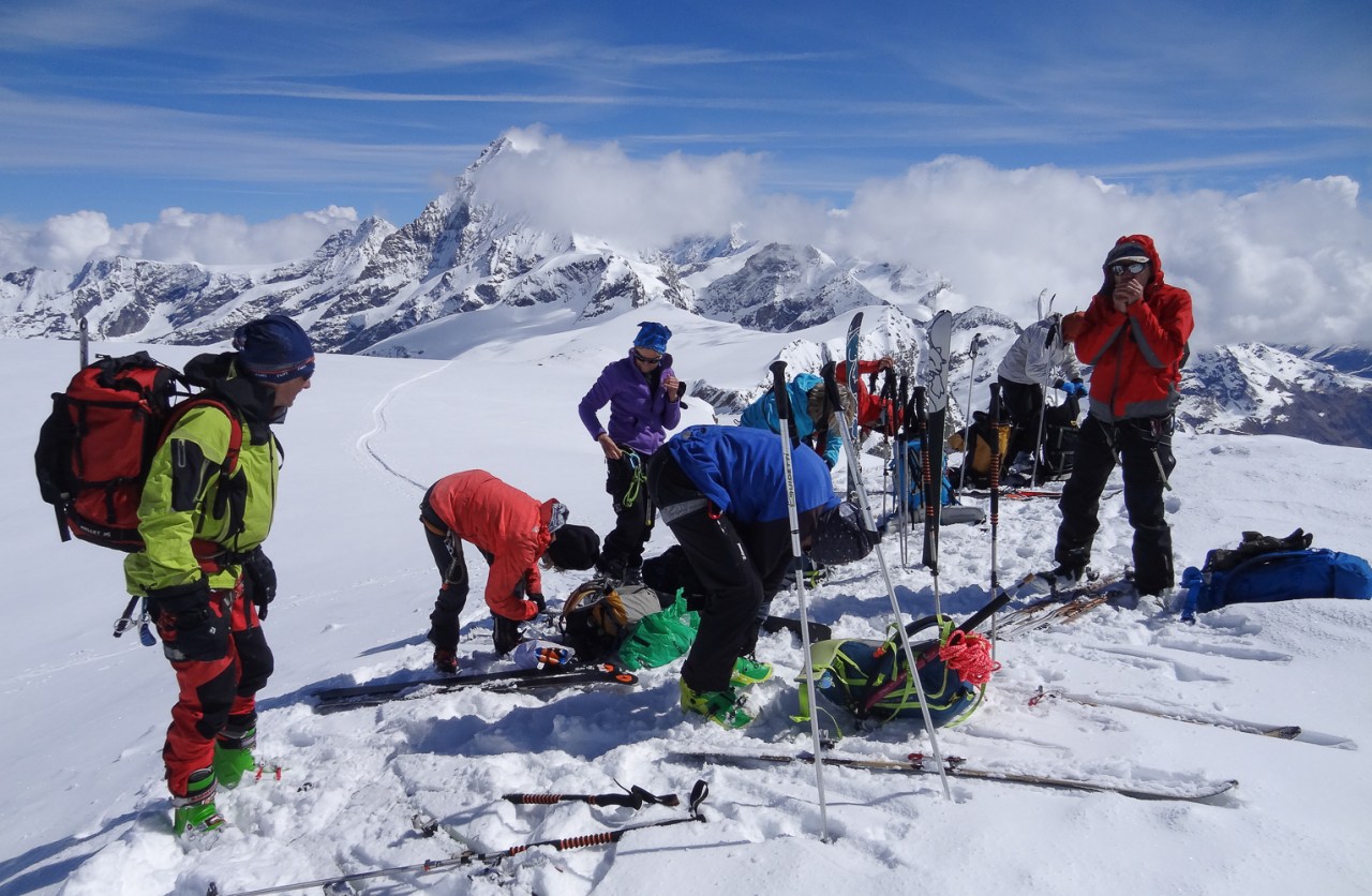 C’est toujours avec beaucoup de plaisir qu’on chausse les skis à Arolla pour monter passer la nuit au refuge des Bouquetins, se faire une bonne soirée entre copains et copines, et démarrer le lendemain pour un beau parcours sur les glaciers, avec la vue imprenable du Cervin depuis le col de Valpelline.