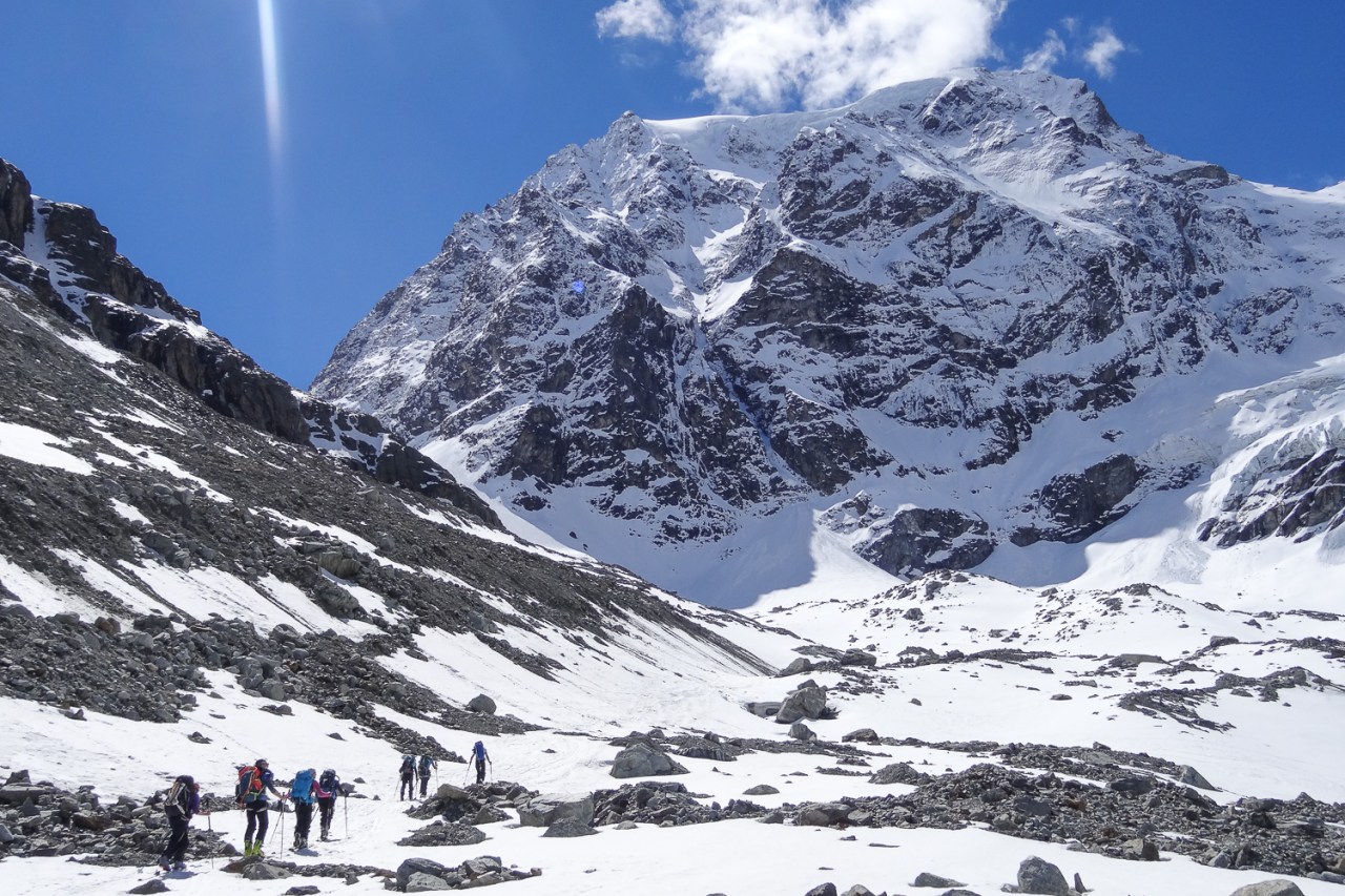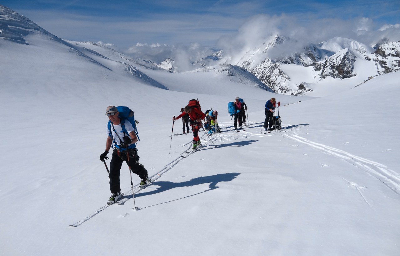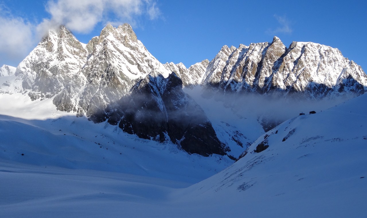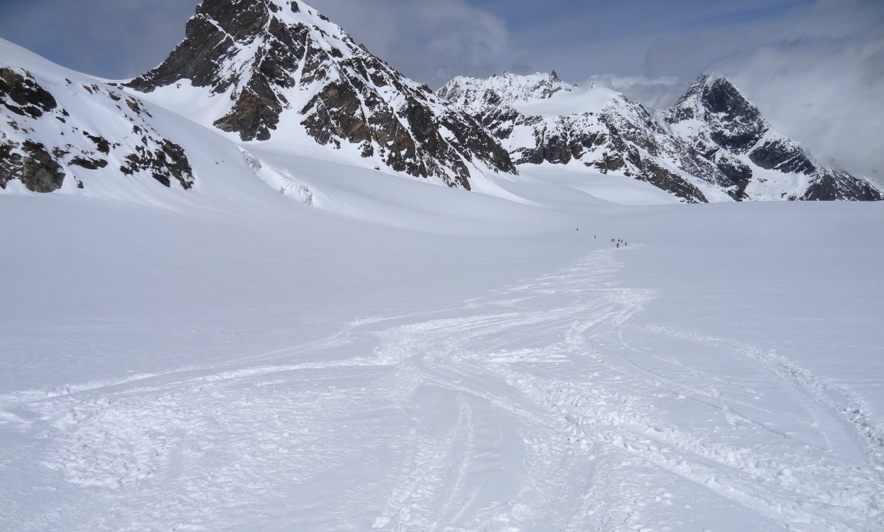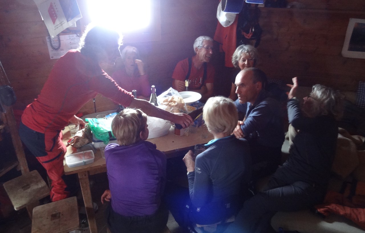 C’est toujours avec beaucoup de plaisir qu’on chausse les skis à Arolla pour monter passer la nuit au refuge des Bouquetins, se faire une bonne soirée entre copains et copines, et démarrer le lendemain pour un beau parcours sur les glaciers, avec la vue imprenable du Cervin depuis le col de Valpelline.