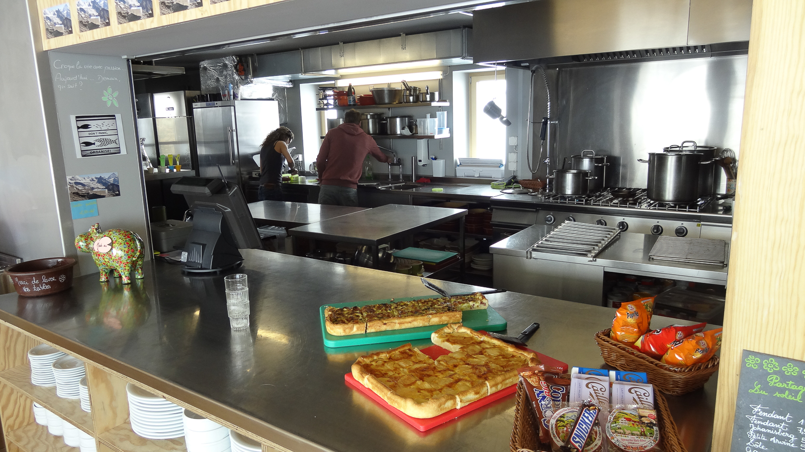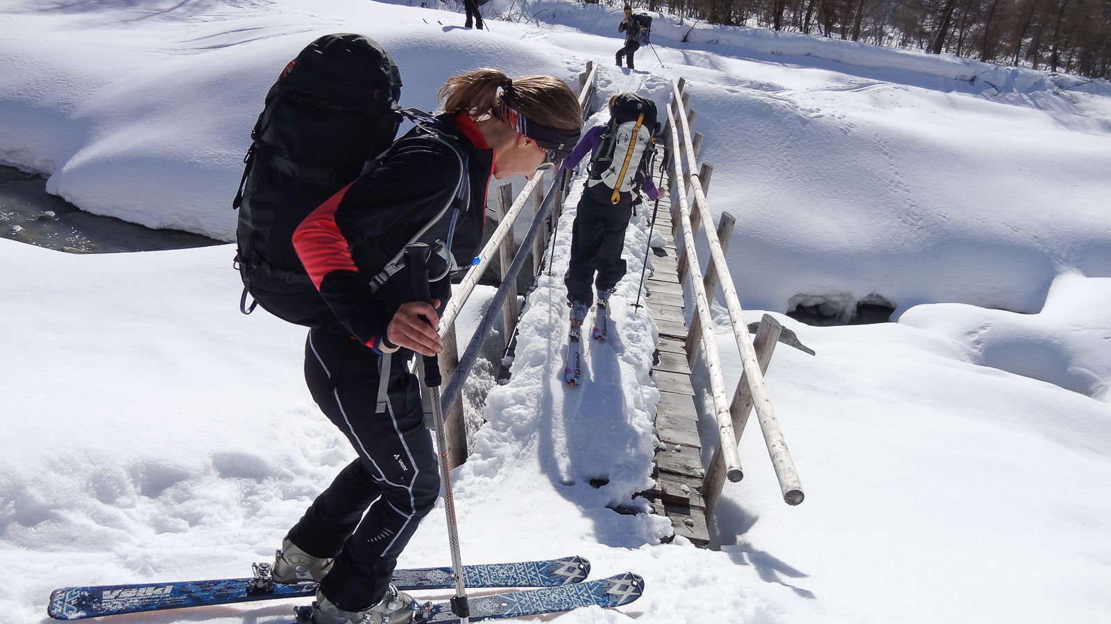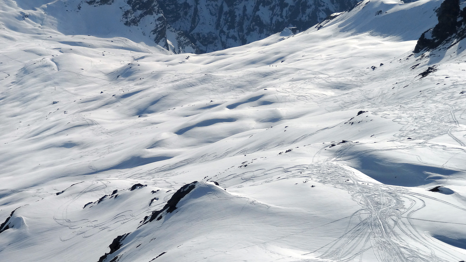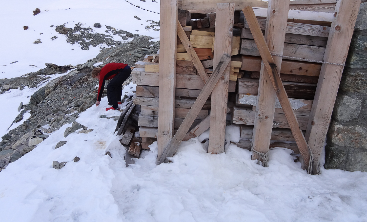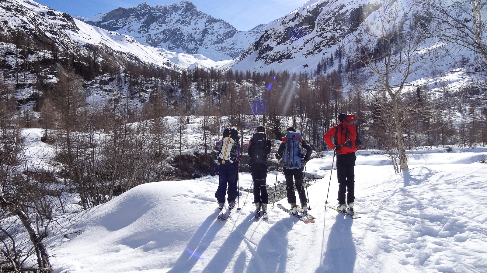 Le lever du jour incertain nous voit remonter les grandes pentes régulières du Bishorn , bien secoués que nous sommes par les rafales. Le plafond nuageux s’abaisse sur nous et il faut sortir les cordes, enfiler une couche supplémentaire et bien fermer les ouvertures. Contrairement à certaines années, le terrain est miné par les crevasses . Enfin, arrivés au col, ça tabasse vraiment trop et on n’en verra pas plus. Donc…c’est demi-tour et GPS au poing pour retrouver exactement la bonne trace, car tout a été effacé. Premiers 4000 à skis pour ma fille Lisa et Fred . On a fêté ça dignement au refuge à la descente !
