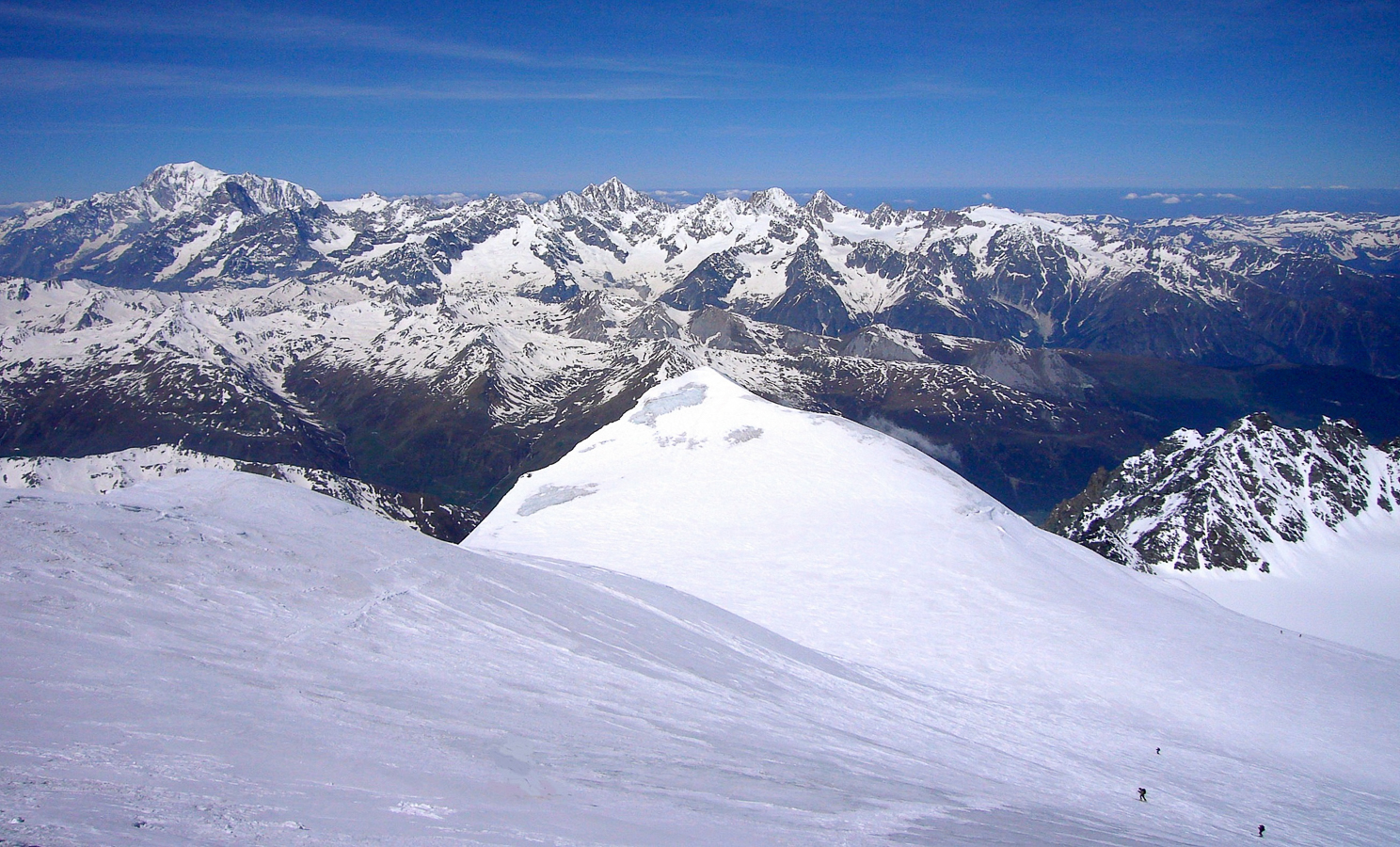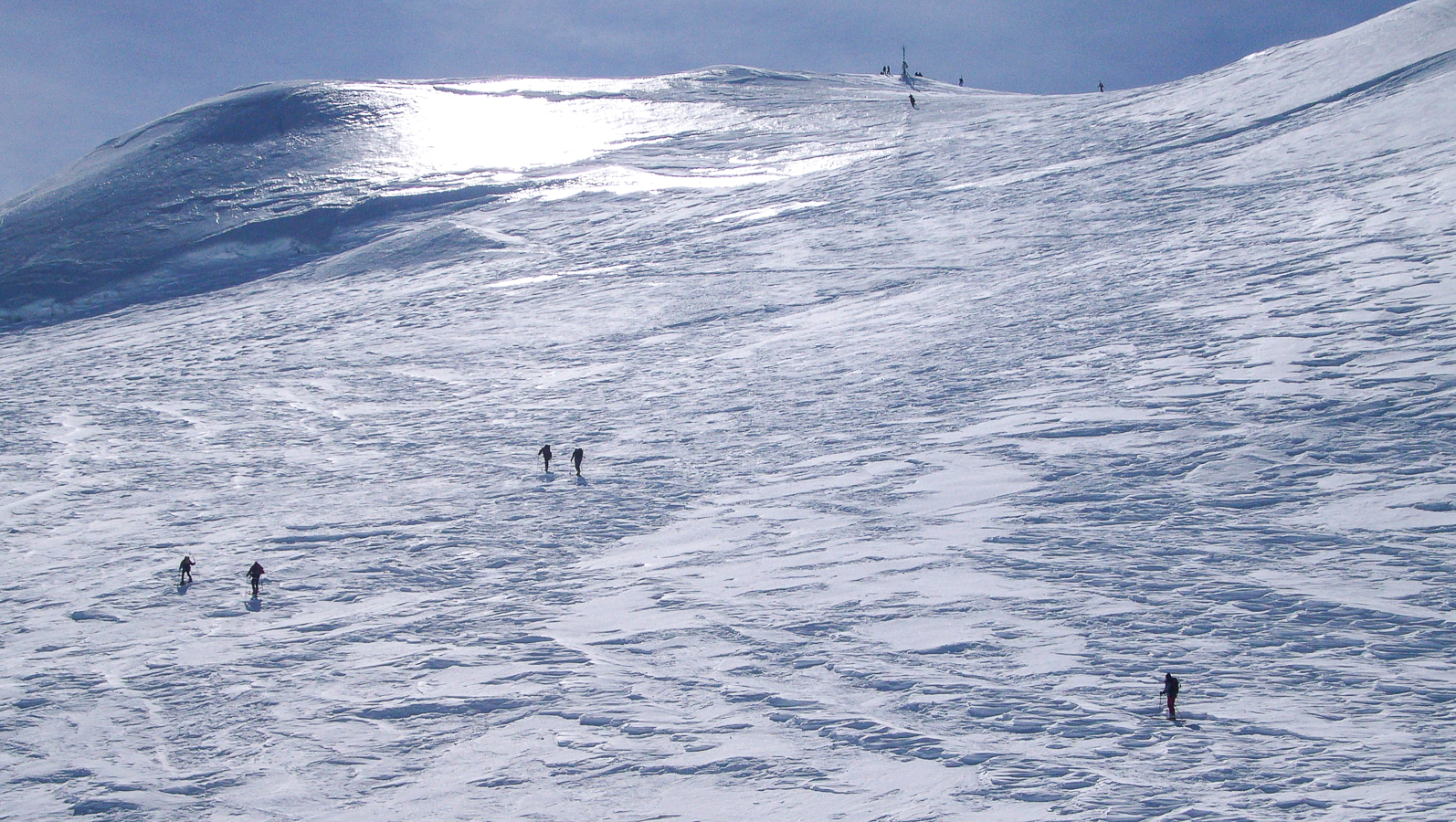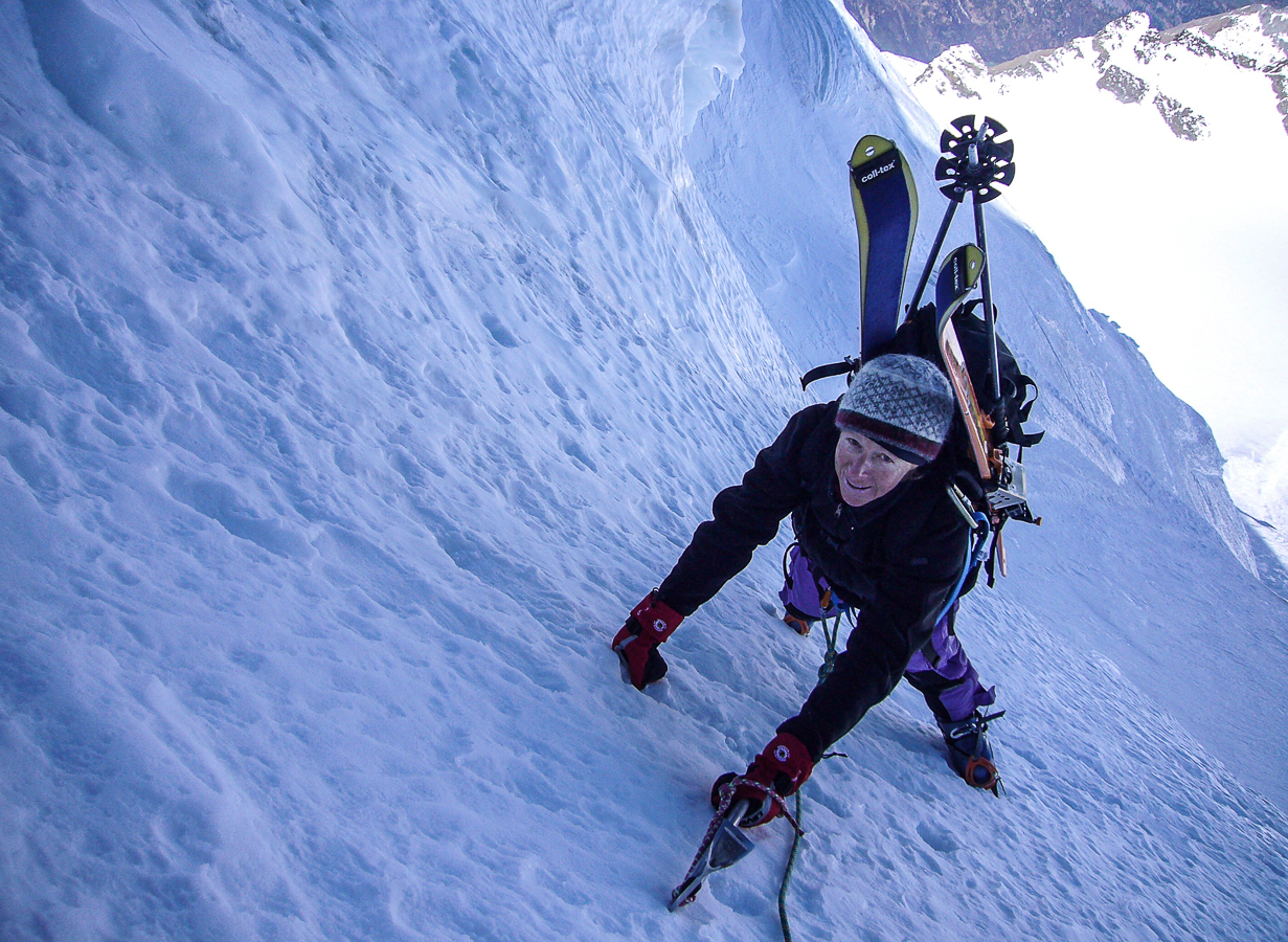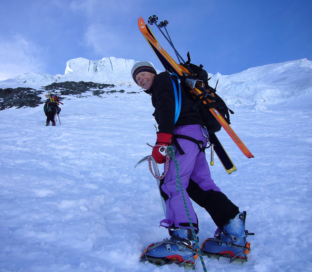 Avec mon épouse, nous y sommes montés et descendus par le couloir du Gardien, qui était en excellente condition de neige à la montée et ski à la descente, après la traversée délicate du couloir nord-ouest, très pentu, avec les skis sur le sac et crampons aux pieds.