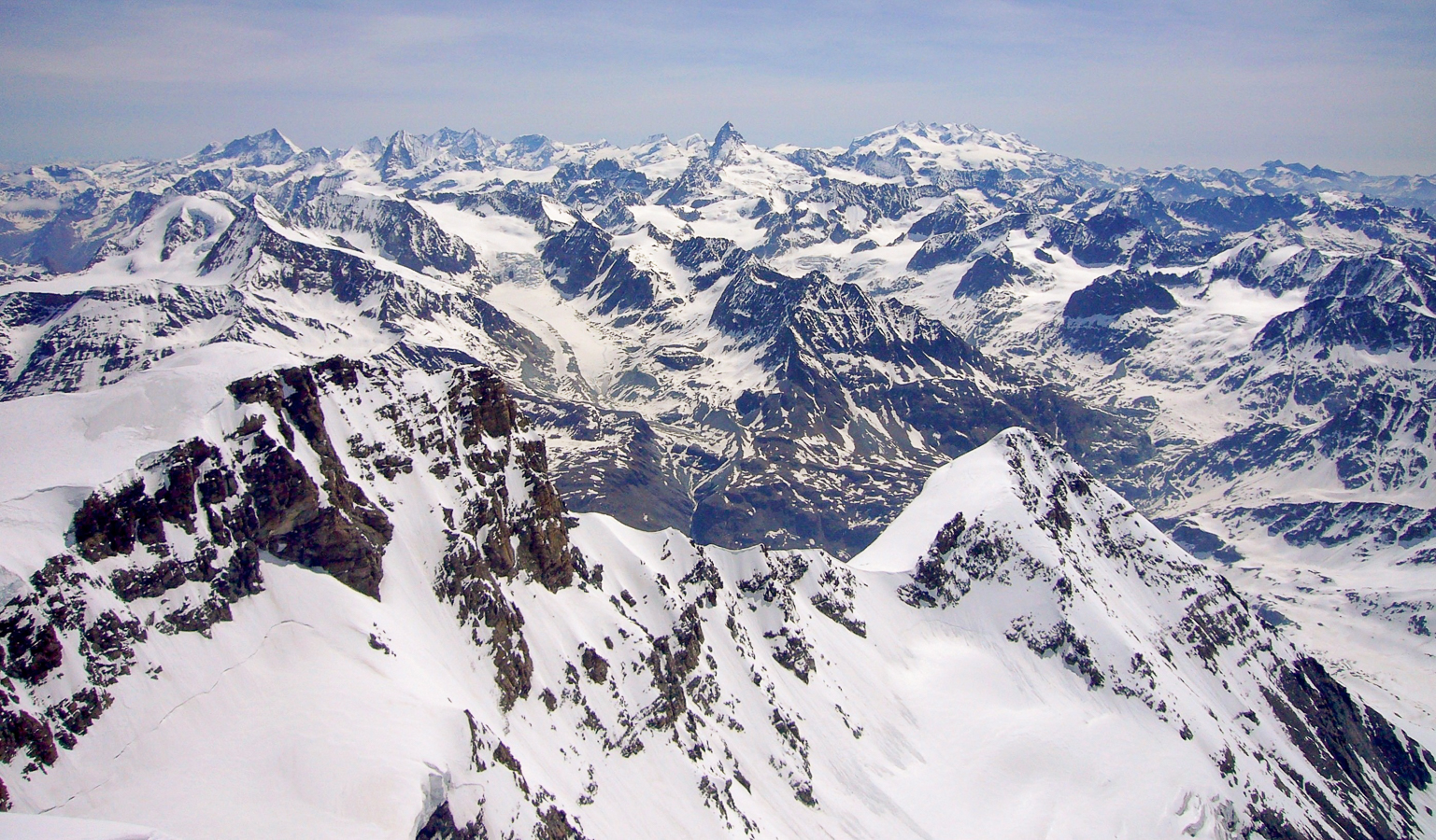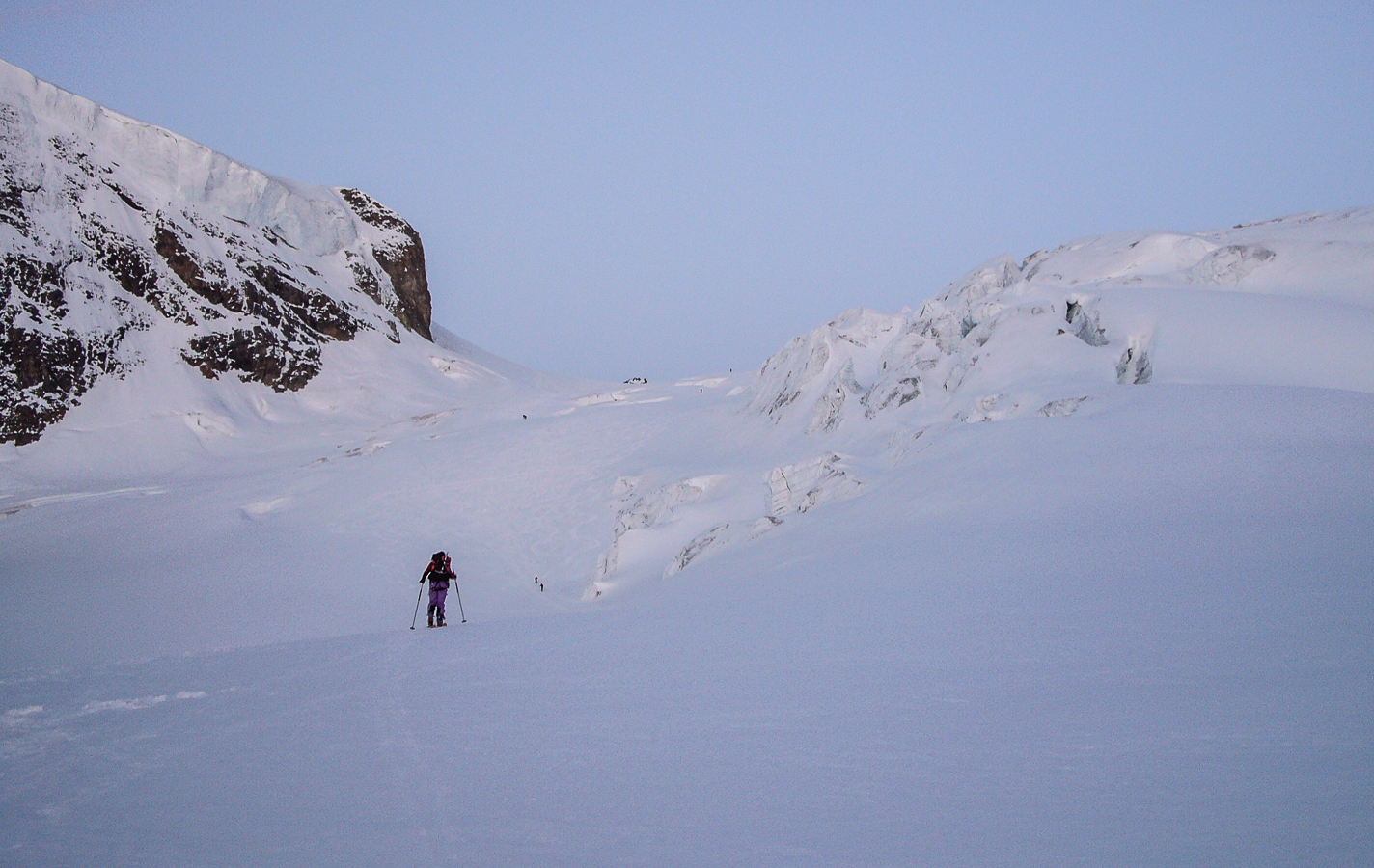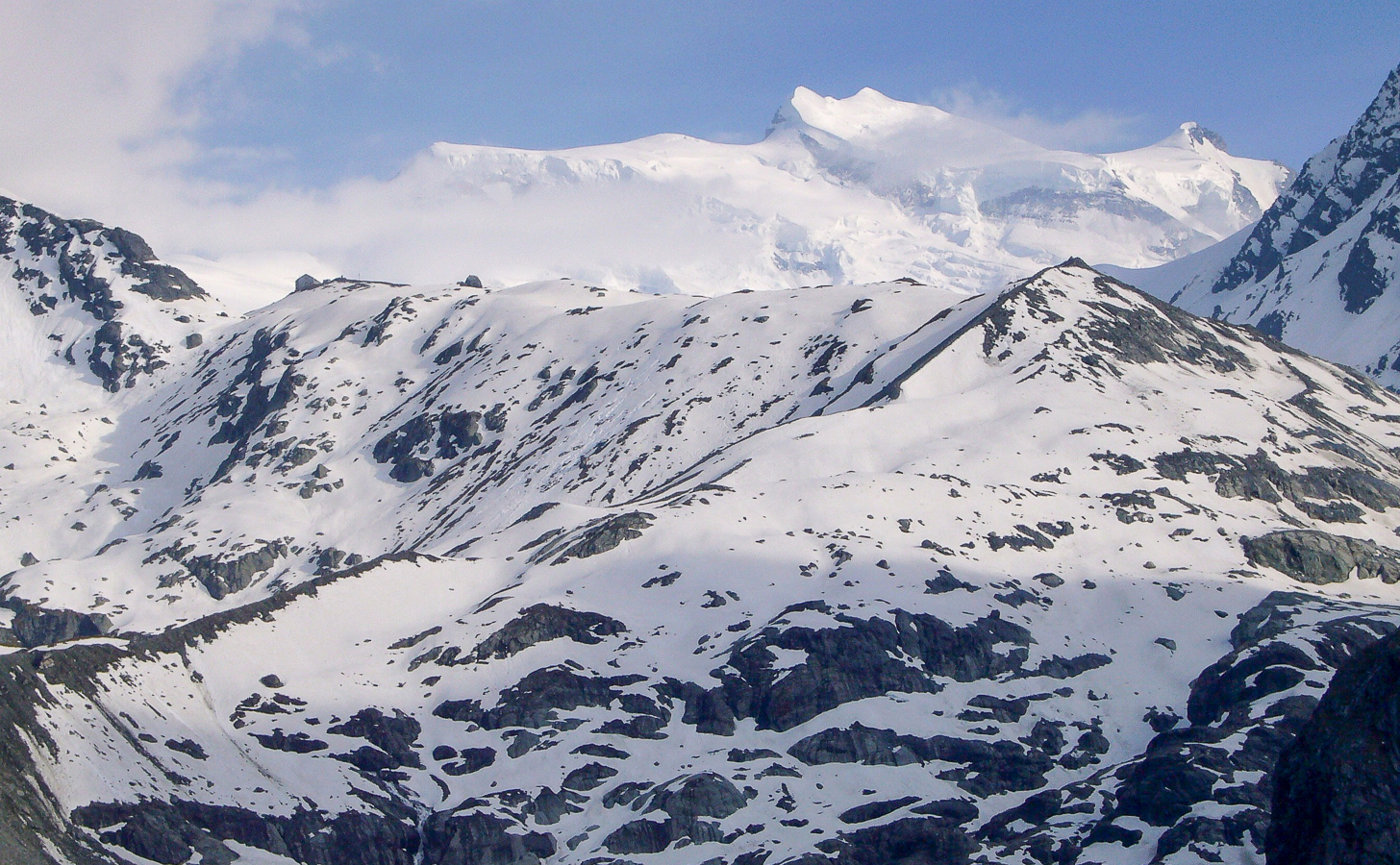 Si vous partez de Fionnay, en Suisse valaisanne, et que vous empruntez le chemin escarpé qui donne accès au refuge de Pannossière, vous allez déboucher sur un des secteurs les plus imposants des Alpes, barré au fond par la masse gigantesque du Grand Combin. Cette course représente un objectif incontournable pour tout skieur-alpinisme qui veut un jour poser son sac sans regret. Cette montagne, on la voit de très loin, elle nous a tenté depuis notre jeunesse et le gardien du refuge de Pannossière, qui surveille la montagne tous les jours aux jumelles, a fait savoir que c’était » tout bon « .