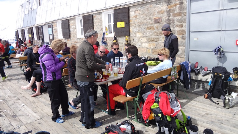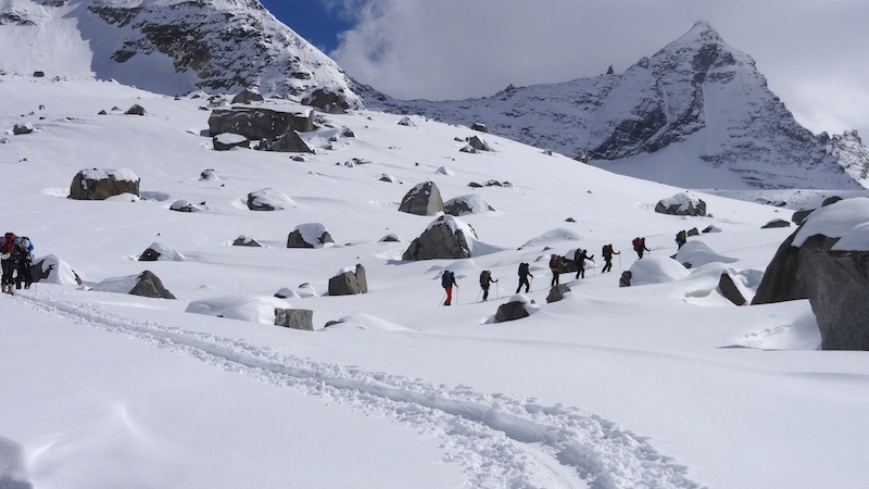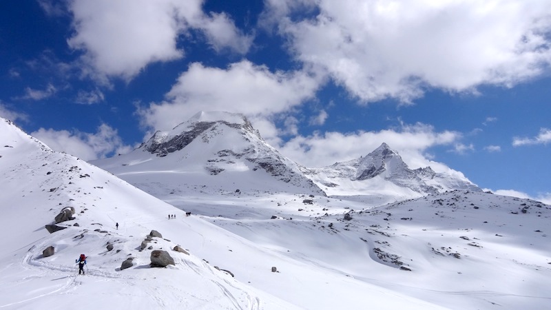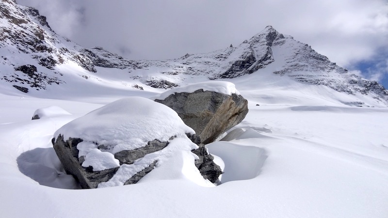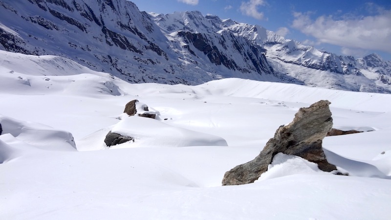 On est allé faire un tour au Grand Paradis, pour toucher un bout de ciel et faire une prière au pied de la Vierge. Elle nous attendait tranquillement, avec son sourire de Joconde aux lèvres, nous, pauvres humains , empêtrés dans nos Gore-tex Dynafit Scarpa Arcteryx Odlo Dynastar Petzl et j’en peux plus tellement on en avait autour du ventre. Qu’est-ce qu’on a bien pu lui raconter une fois là-haut ?