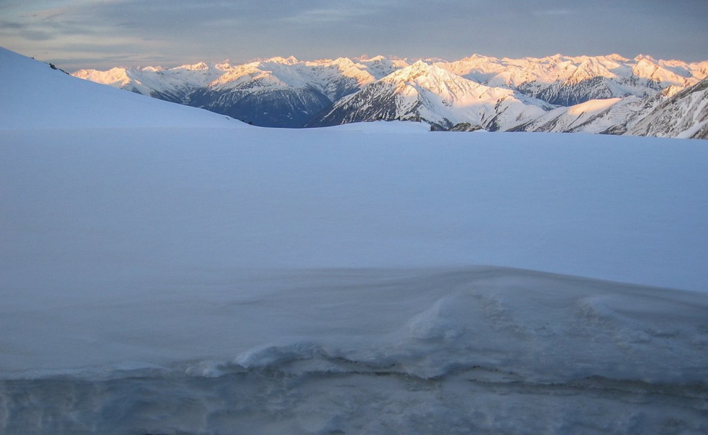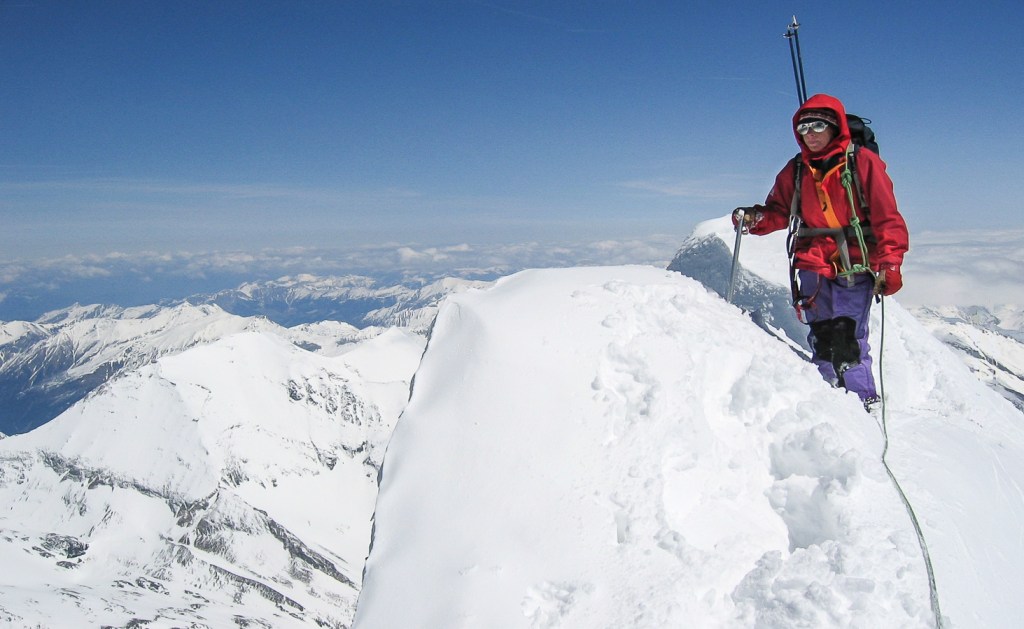 Le Grossglockner est le plus haut sommet d’Autriche. Son ascension à skis se fait au départ du village de Kals en passant par le refuge Stüdlhütte jusqu’à la base du sommet où il faut alors chausser les crampons. Passage au refuge Erzherzog-Johann-Hütte. L’arête est sécurisée par des barres de métal qui s’avèrent très pratiques ( un peu comme au Cervin) et sur lesquelles on peut s’assurer efficacement. Le point de vue est très large sur tout le massif. Il permet de bien comprendre la topographie de ce coin du Tyrol, et d’observer de loin le Grossvenediger, que nous avons pu également gravir 2 jours avant, dans d’excellentes conditions.