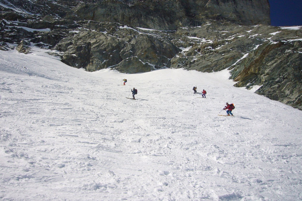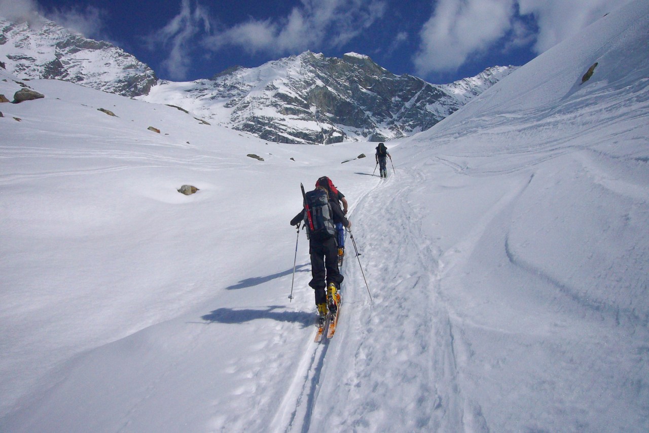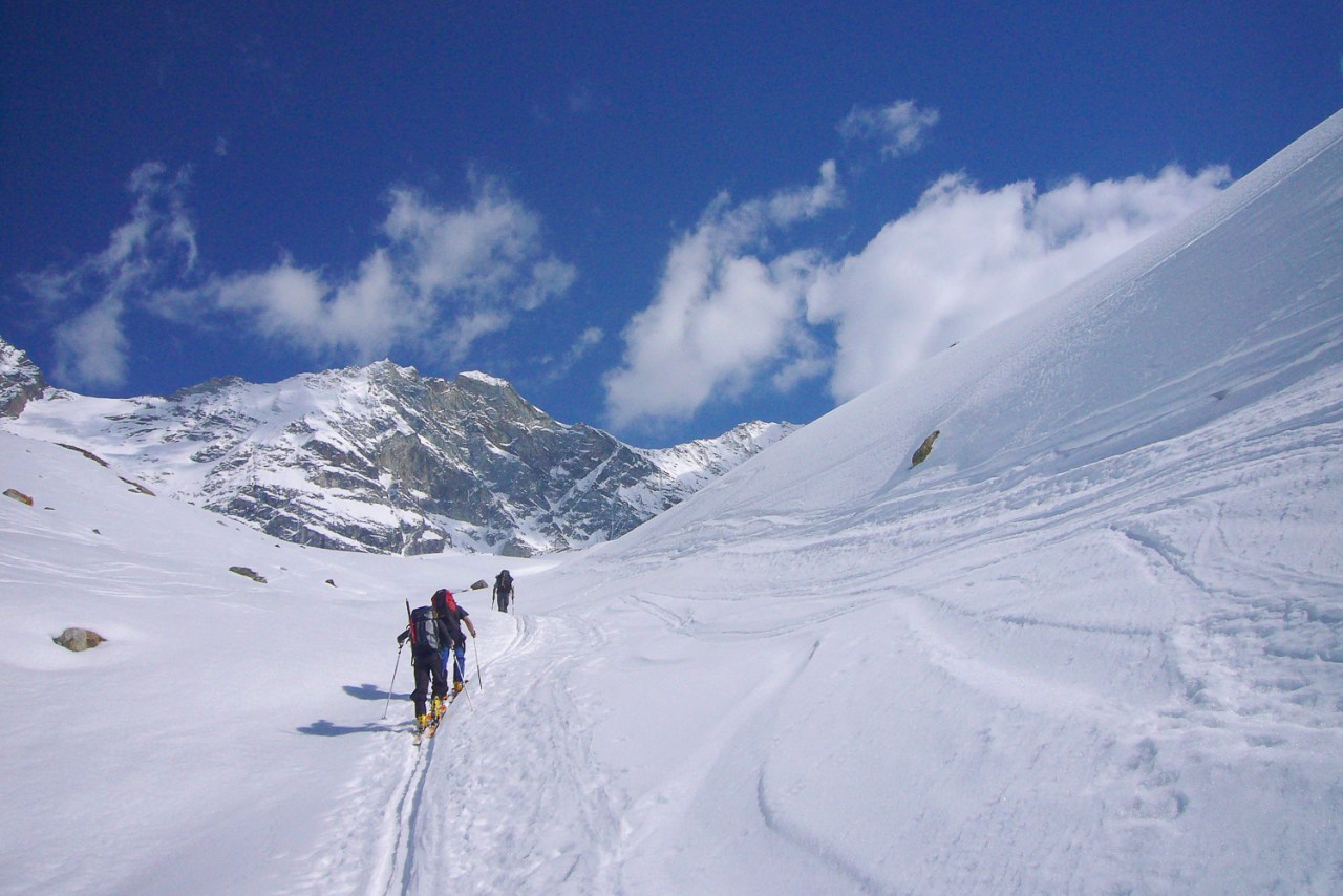 L’interêt de gravir le Blanc de Moming, n’est pas tant d’atteindre skis aux pieds un magnifique belvédère offrant une vue splendide sur la Couronne de Zinal, mais de passer une nuit dans la très sympathique « cabane » d’Ar Pitteta, placée comme un îlot salvateur au pied de la gigantesque face sud du Weisshorn. Non gardé en hiver, il offre au visiteur le confort rustique et largement nécessaire pour passer une nuit agréable et se mitonner de quoi se sustendre. La première montée au départ du lendemain demande des précautions sur les premières pentes assez fortes et gelées, un encordement efficace en cas de glissade sur les fesses. Le reste, et surtout la descente qui demande de toujours bien longer la base du Besso, afin de ne pas rater le point à partir duquel il faut alors plonger directement pour rejoindre le fond de la vallée .