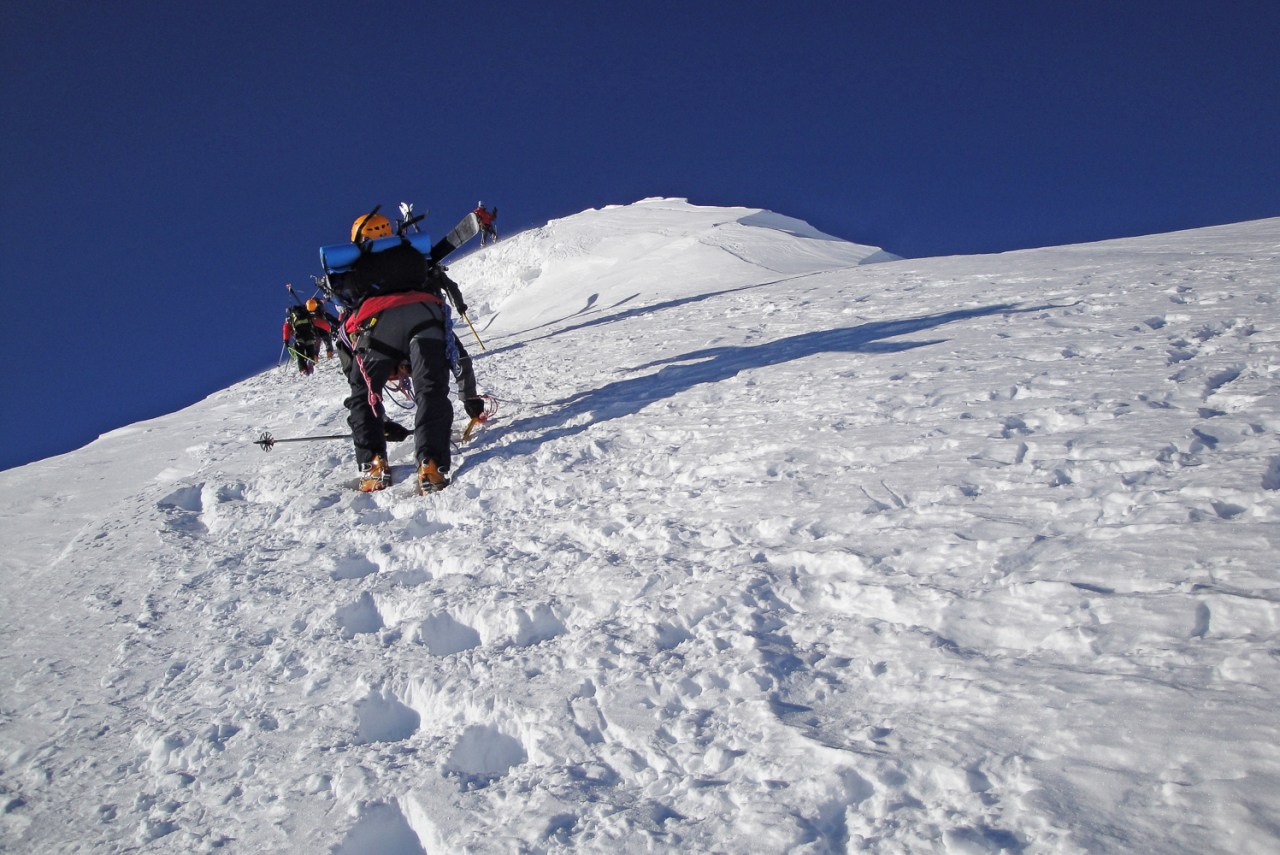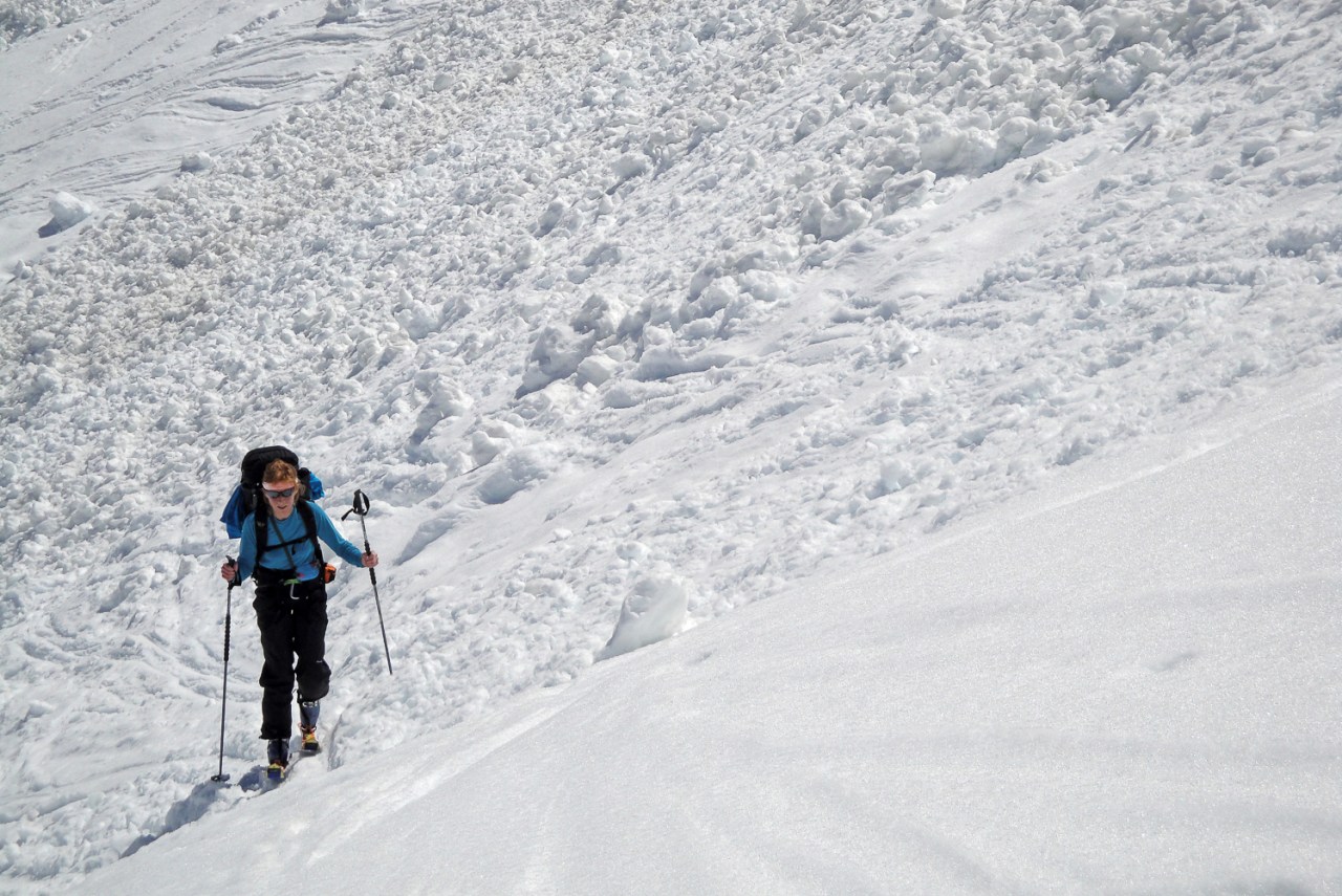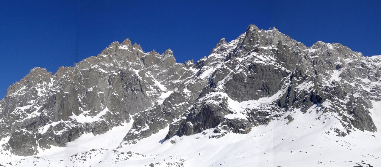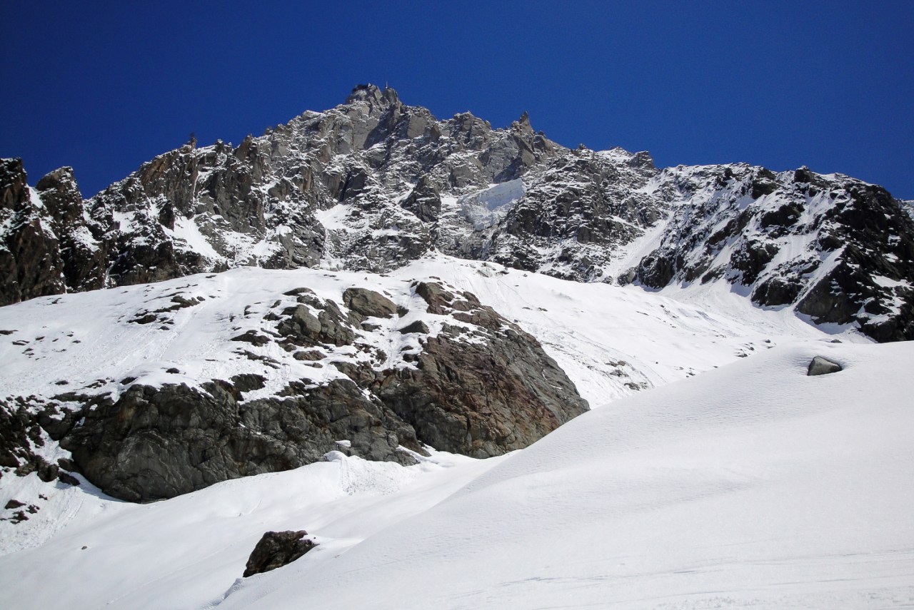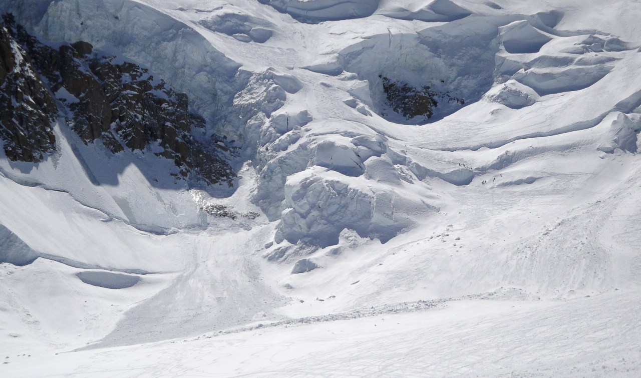 L’ascension à skis du Mont-Blanc est également un bel objectif pour tout amateur de grands espaces, d’efforts soutenus dans l’obscurité et le froid mordant de l’altitude. La montée encordée au refuge des Grands Mulets n’est pas sans dangers: avalanche dans la longue traversée sous l’Aiguille du Midi, crevasses à la jonction des glaciers des Bossons et Taconnaz. La météo dicte sa loi. Un nuage lenticulaire qui peut paraître anodin depuis Chamonix, génère près du sommet des conditions hivernales, froid, brouillard, neige, vent, qui désorientent bon nombre de cordées.