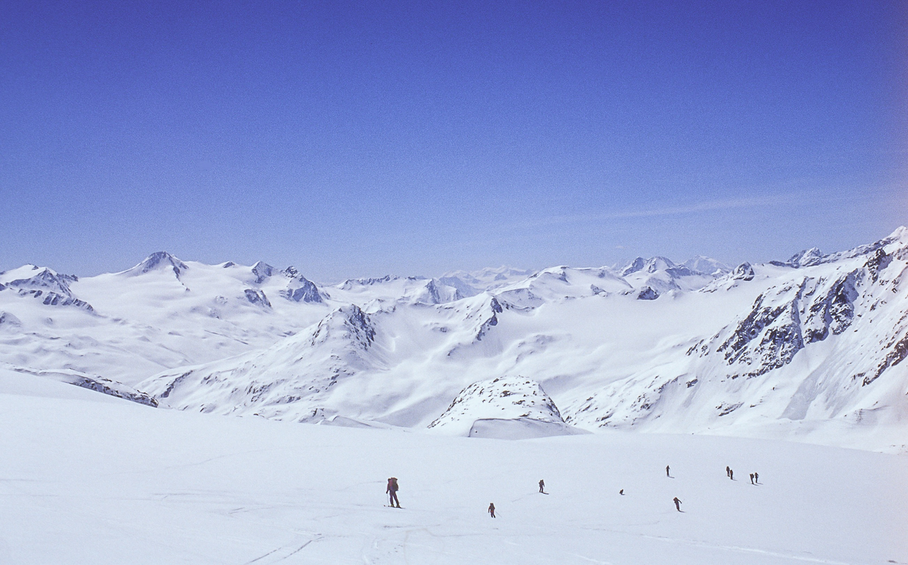 Ces quelques photos n’ont pas pour objet de montrer de belles montagnes et glaciers, tels qu’ils se présentent à nous pendant une semaine de parcours entre refuges et sommets, mais plutôt de transmettre un esprit d’amitié et bons moments partagés. Nous pouvons observer la montée au refuge Martin Buch, au Similaun, dans le gros mauvais temps au sommet, le retour au refuge, le passage devant la stèle dédiée à la découverte d’Otzi , une tentative au Finelspitze, bloquée par le mauvais temps, l’arrivée au refuge Hochjoch , la traversée sur Vernagthütte, et l’ascension du sommet emblématique du massif: Wildspitze.