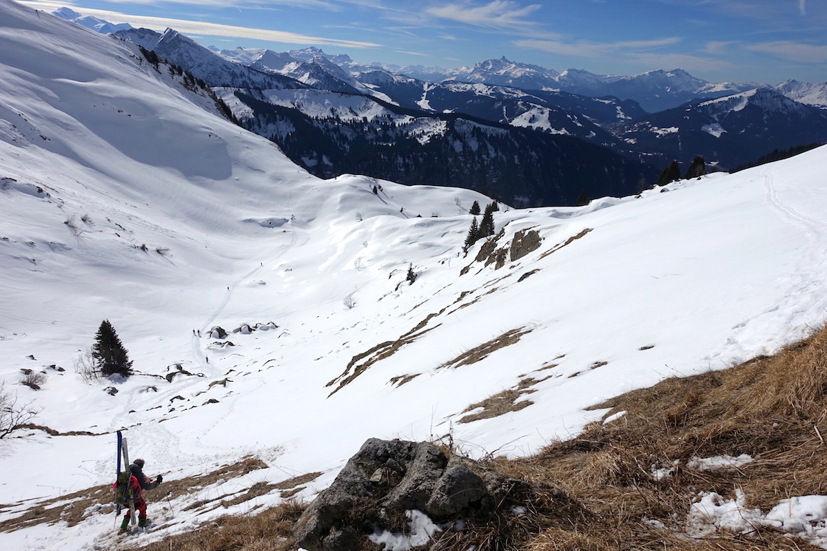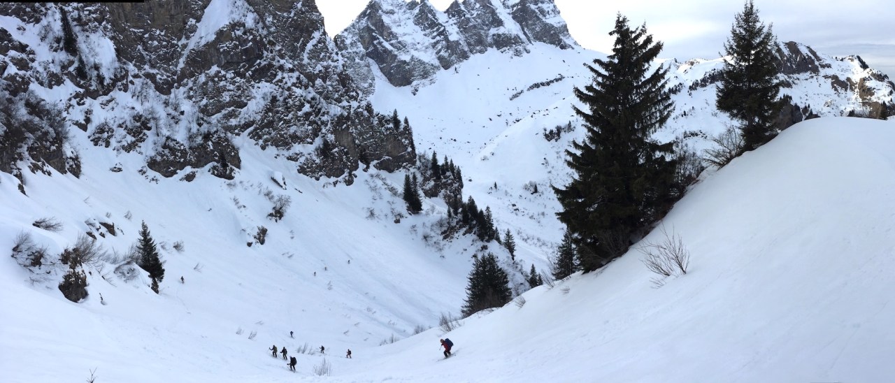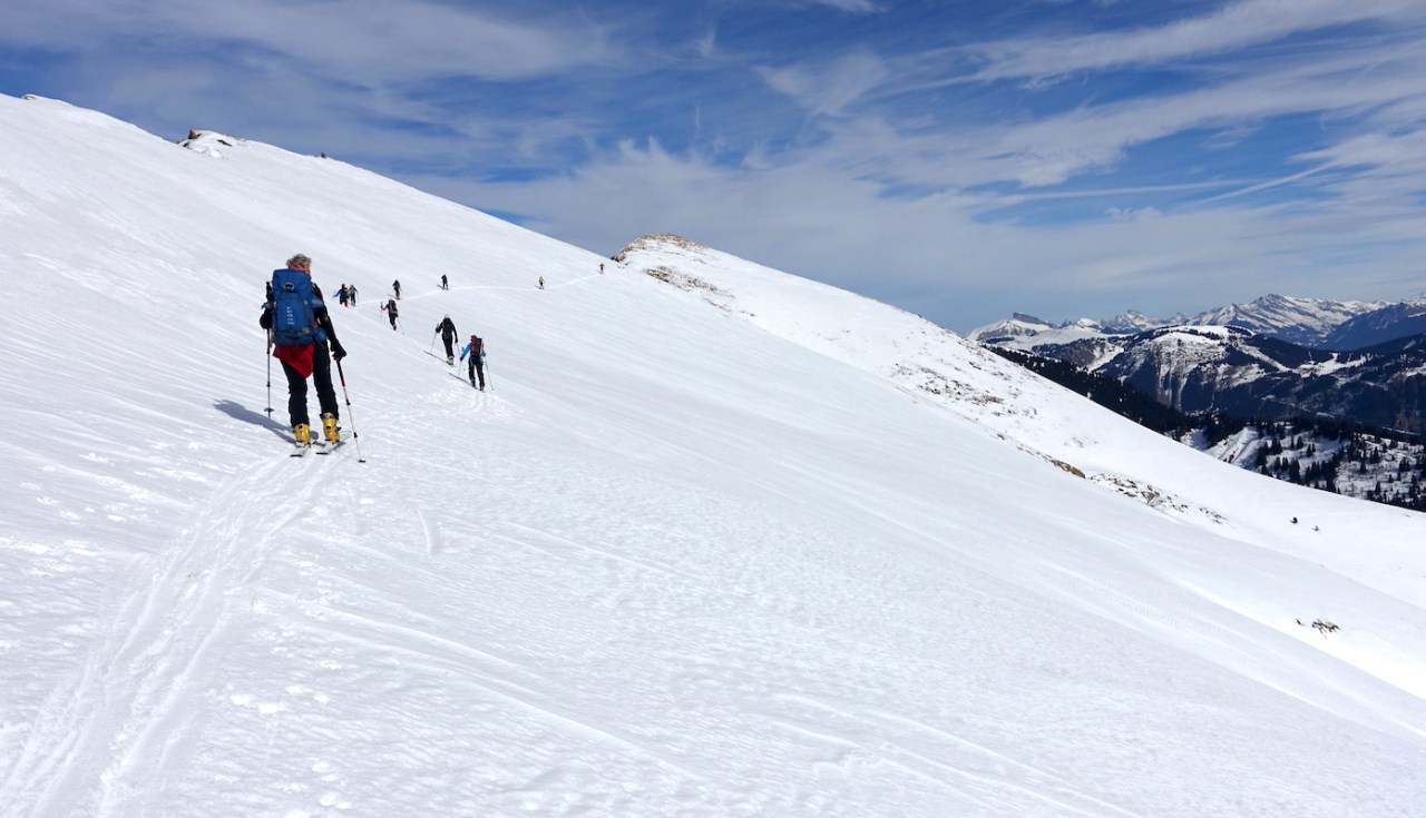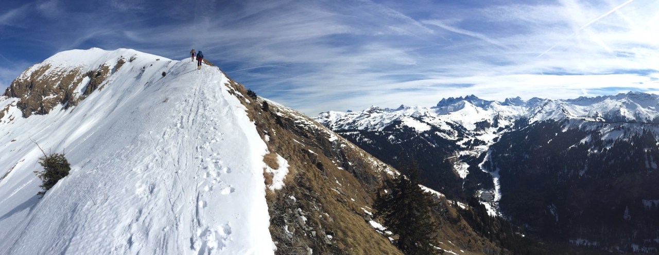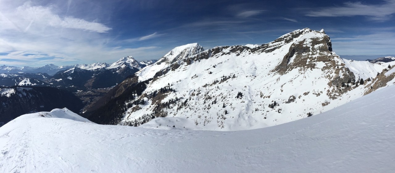 Le tour de la Chavache au dessus d’Abondance en Haut-Chablais réserve de magnifiques coups d’œils sur les sommets proches du Léman. Parcours varié, entre ombre et lumière, il offre toutes les conditions pour bien choisir un itinéraire sûr, entre pentes fortes et chargées au sud, froides et légères en versant nord.–