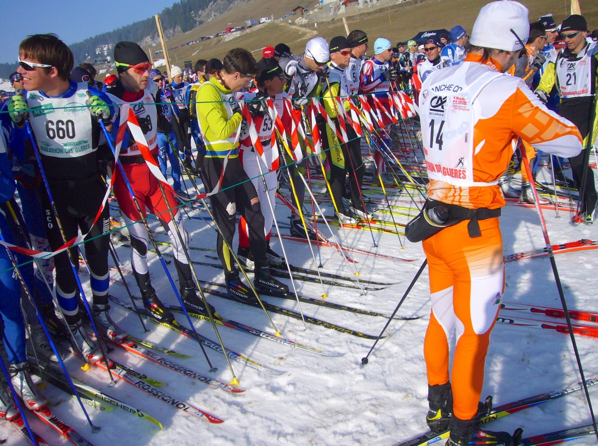 Avant la course, la tension est palpable. On plaisante avec les copains pour décompresser un peu. Comment ça va se passer ? Est-ce que je vais tenir le rythme ? Je suis peut-être trop habillé. Il fait froid. Il faut pas que je casse un bâton au départ. Quand le coup de fusil est parti, on ne pense plus qu’à pousser sur les bâtons.