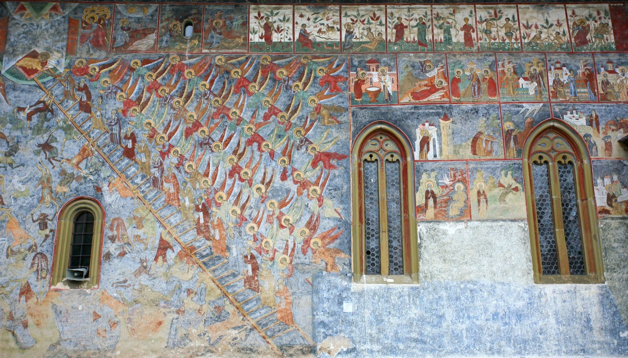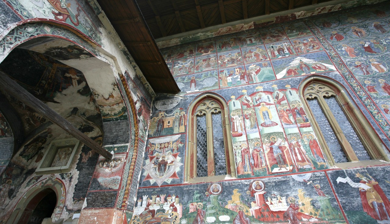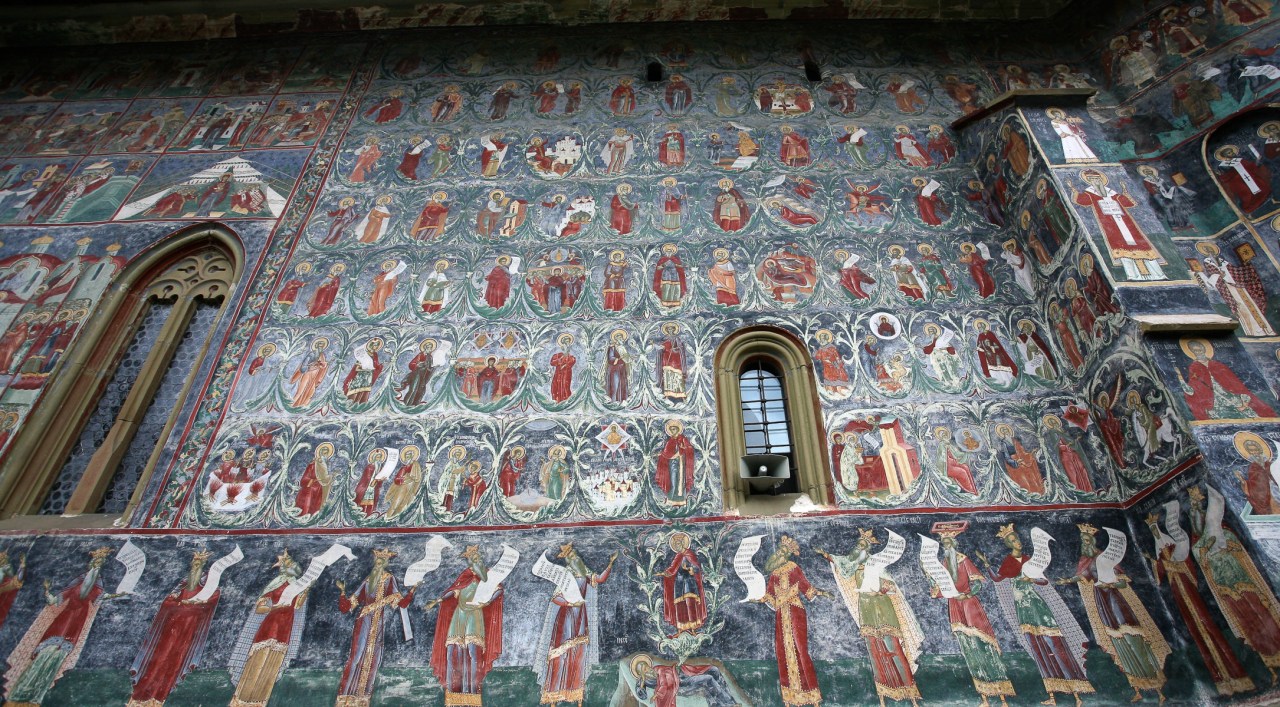 Dans chaque pays visité, on constate que la foi peut déplacer des montagnes. Ici, en Bucovine, province Moldave située au Nord-ouest de la Roumanie, rendue célèbre grâce aux fresques exceptionnelles et merveilleuses qui parent les murs extérieurs de ses monastères édifiés au XVème et XVIème siècles, sous le règne de Etienne le Grand, l’art prend tout son sens. Les formes et couleurs se lient pour le plaisir de l’œil, l’œil émerveillé si cher à Samivel.